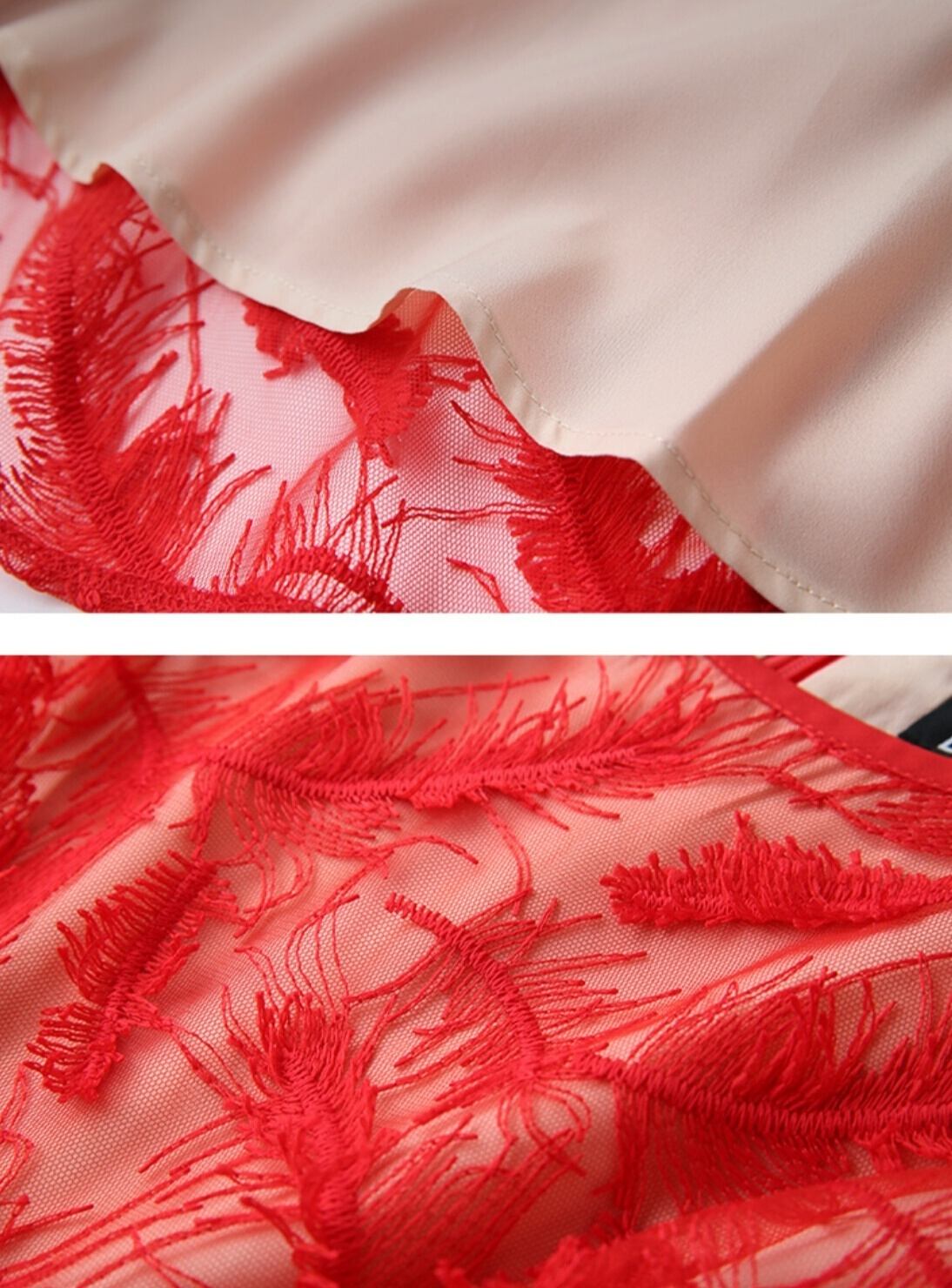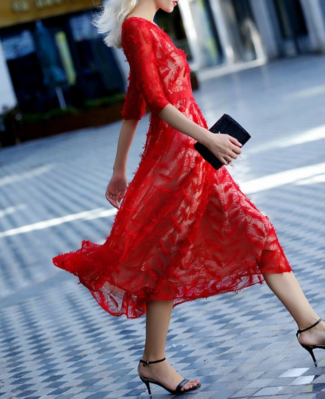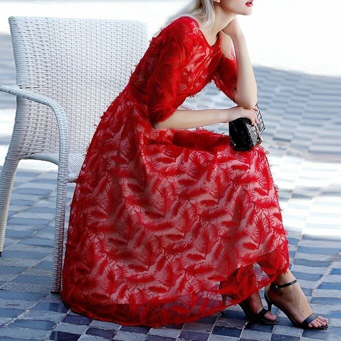 パーティ−におすすめひと目置かれる真っ赤なロングフレアドレス