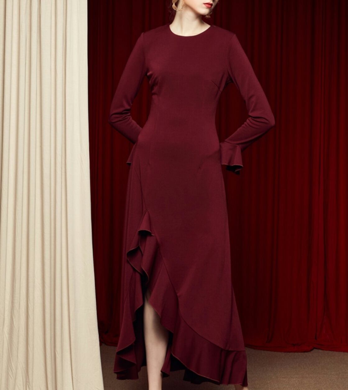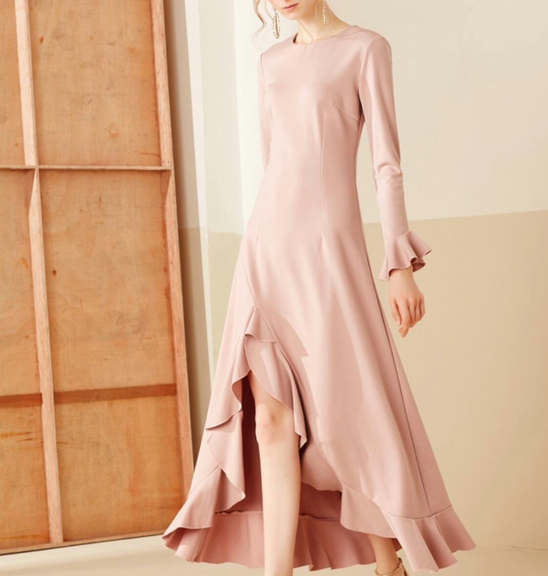 大人ガーリースタイル/ヘムラインに特徴を置いたロングドレス