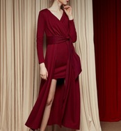 ロング&ミニのメリハリが脚元を綺麗に演出Vネックワンピース