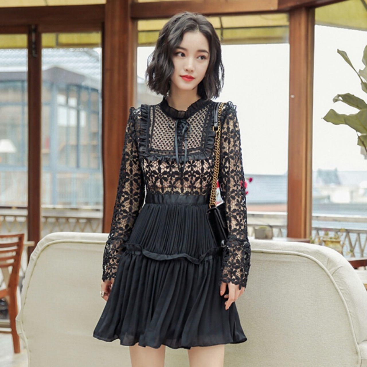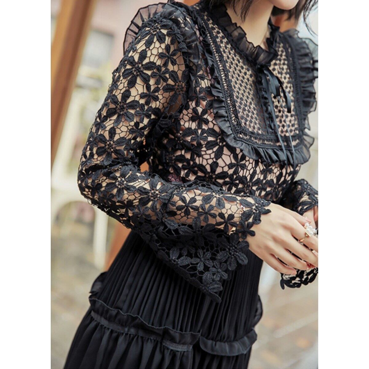 結婚式やパーティーにレトロガーリーなレーストップ異素材ドレス