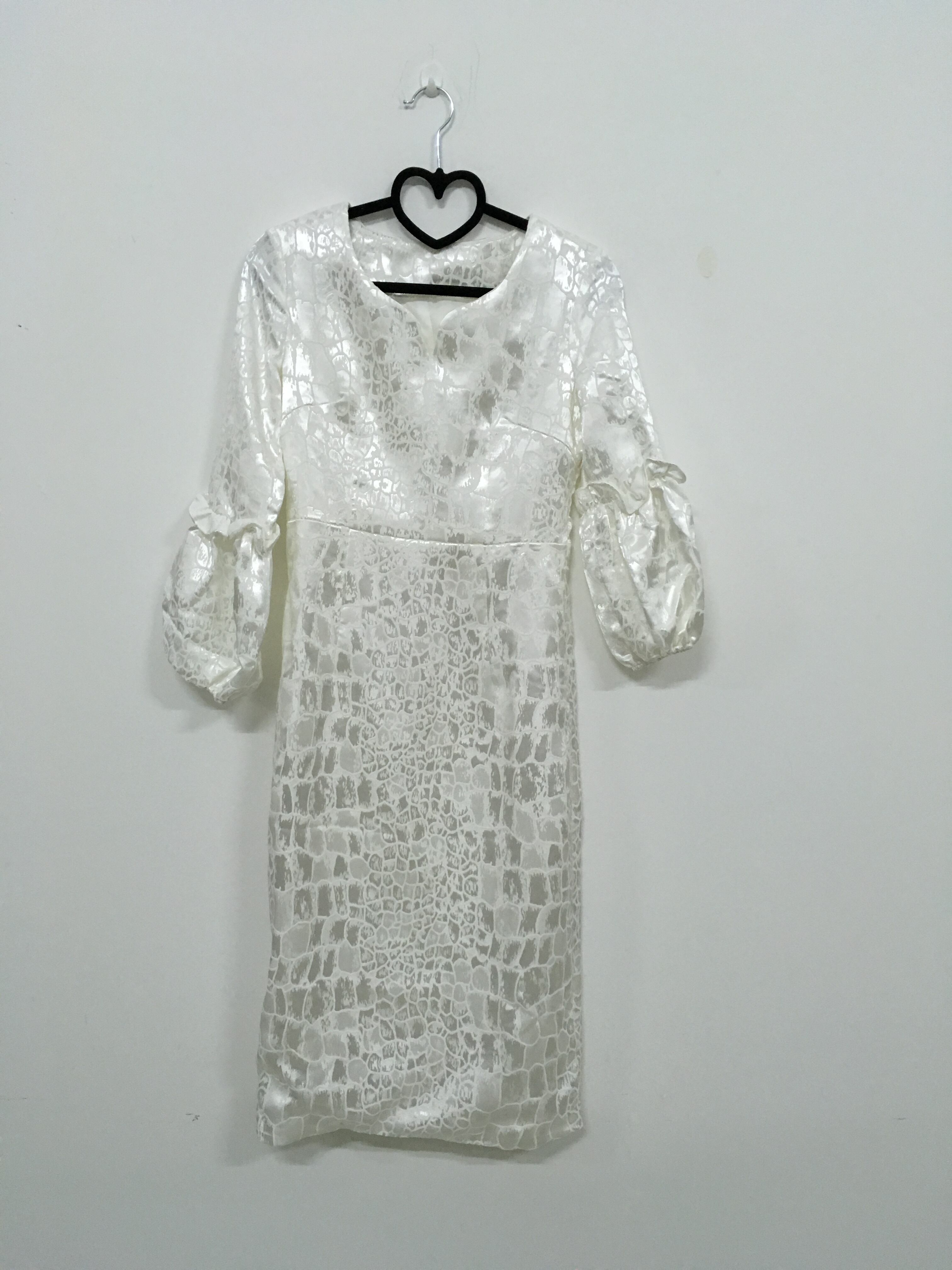 即納//シャイニーシャドー模様が綺麗/白ワンピース