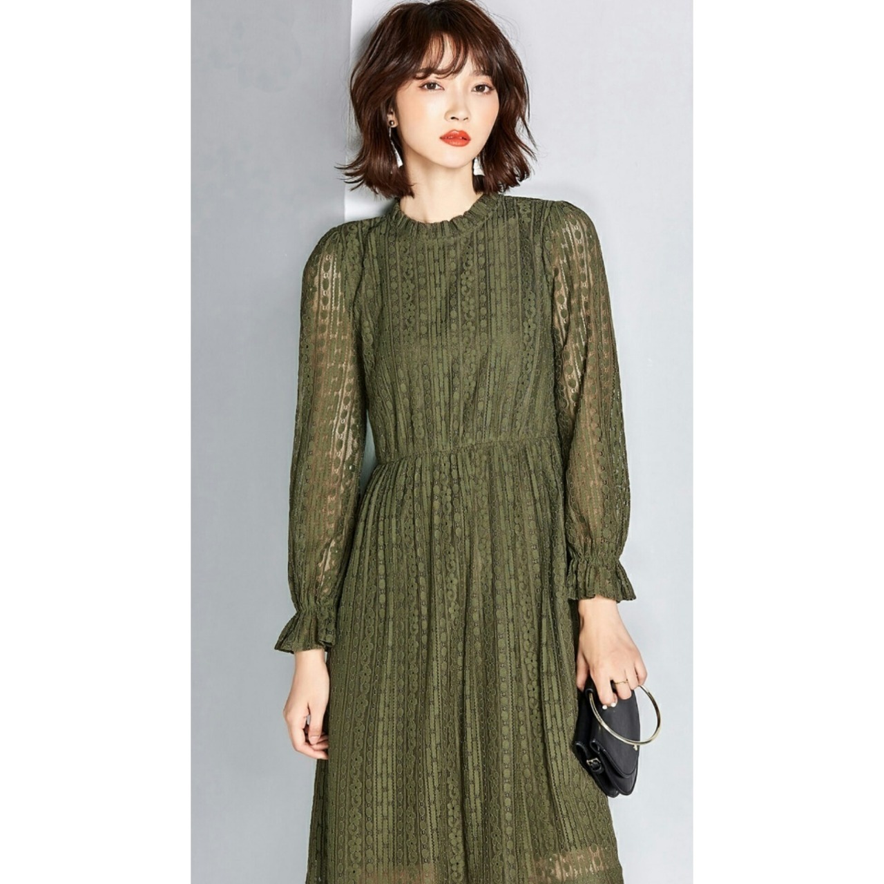パーティー/結婚式に花柄&ドットレースが可愛いドレス緑/黒/白