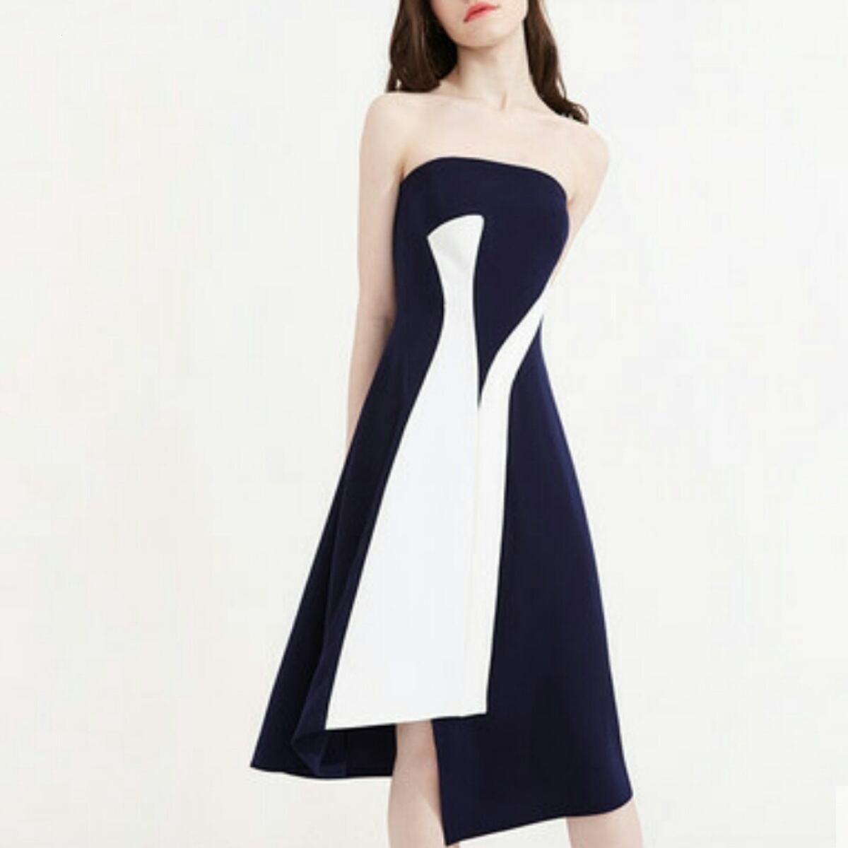 フィット&フレア斬新なバイカラーアシンメトリーベアドレス