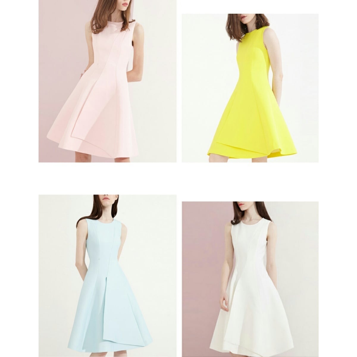 エアリー感あるフォルムに拘ったノースリーブドレス青/ピンク等