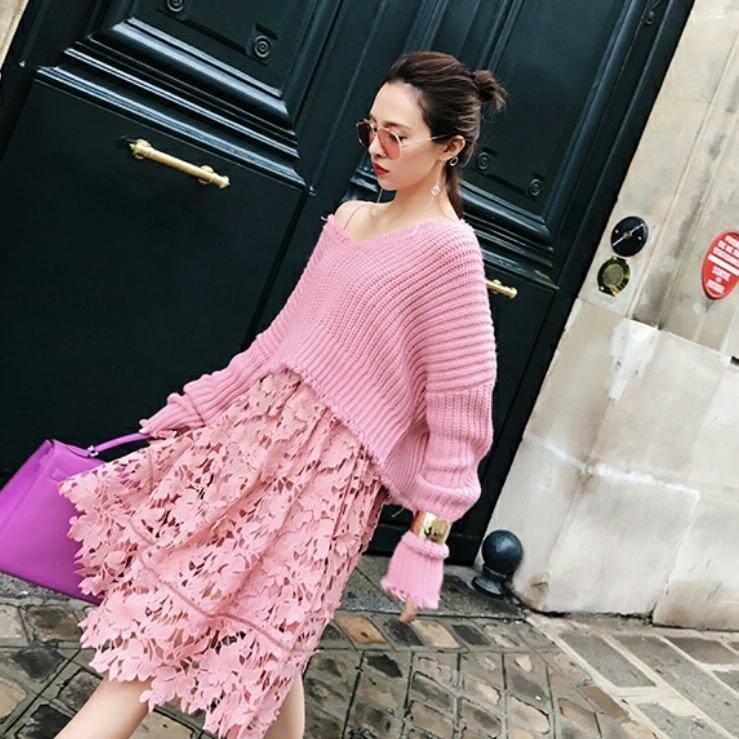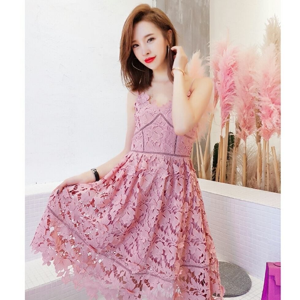 ガーリー好きにおすすめ/ピンクの花柄レースキャミワンピース