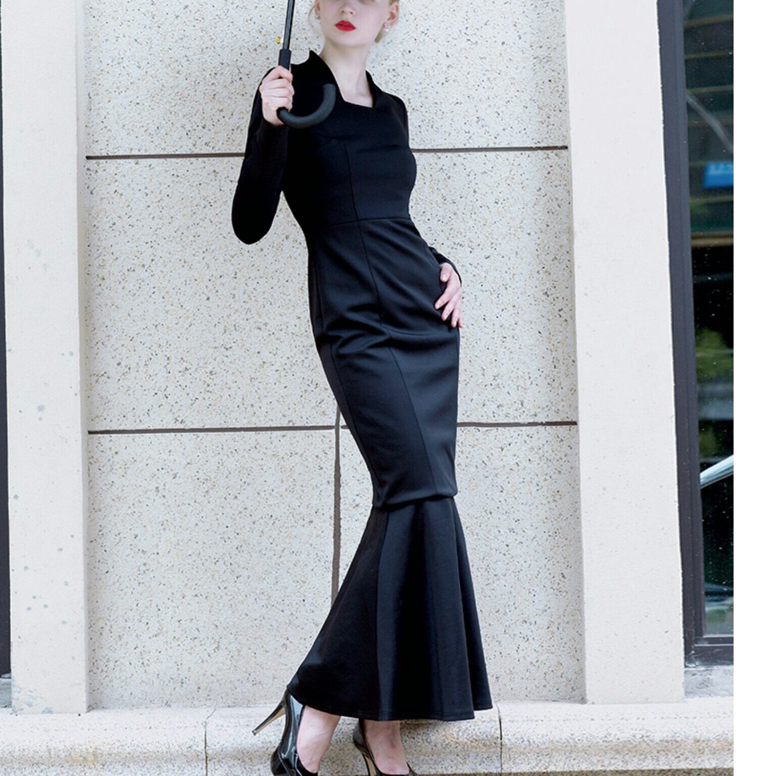 かっこいいフォルムの綺麗なマーメイドラインの黒のドレス