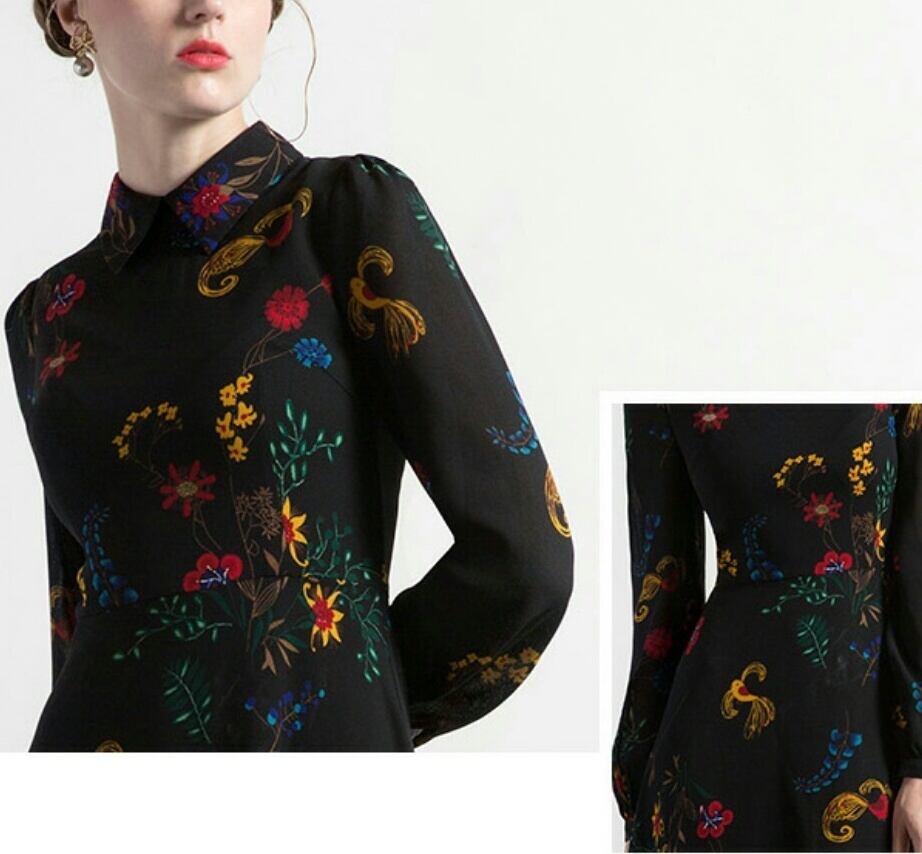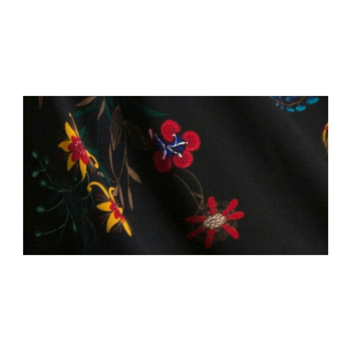 可愛いアレンジのマルチカラーの花柄ロングフレアドレス