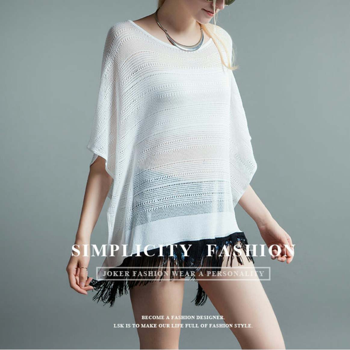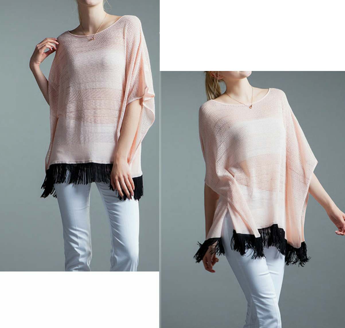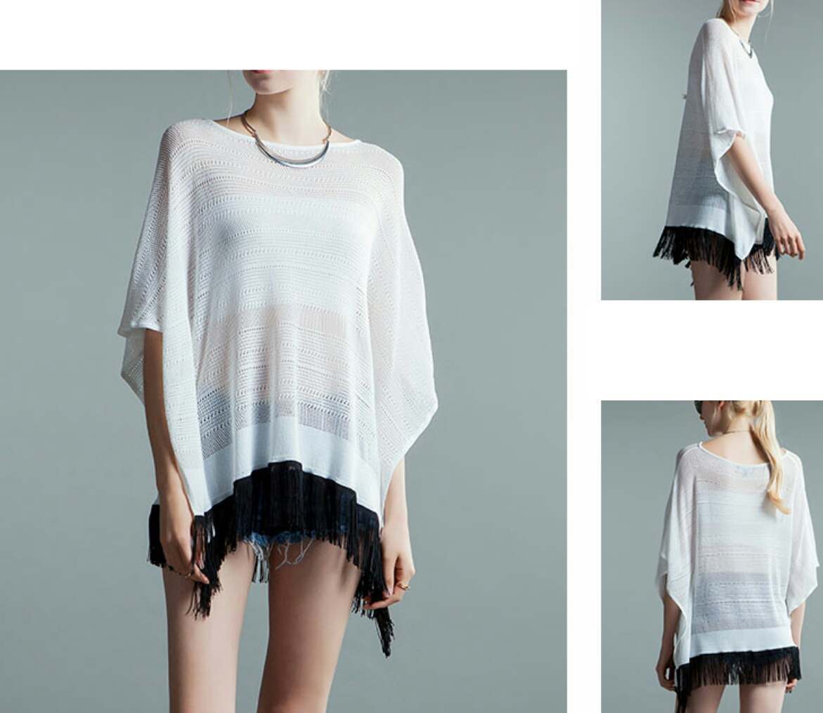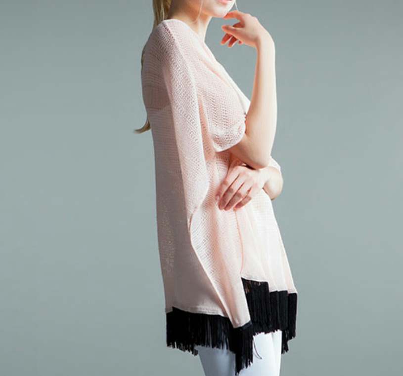 新作 オシャレ♪2色/ヘムフリンジオーバーサイズトップス