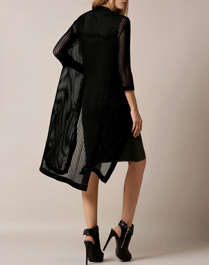 新作 オシャレ♪4色/シアーニットストライプカーディガン