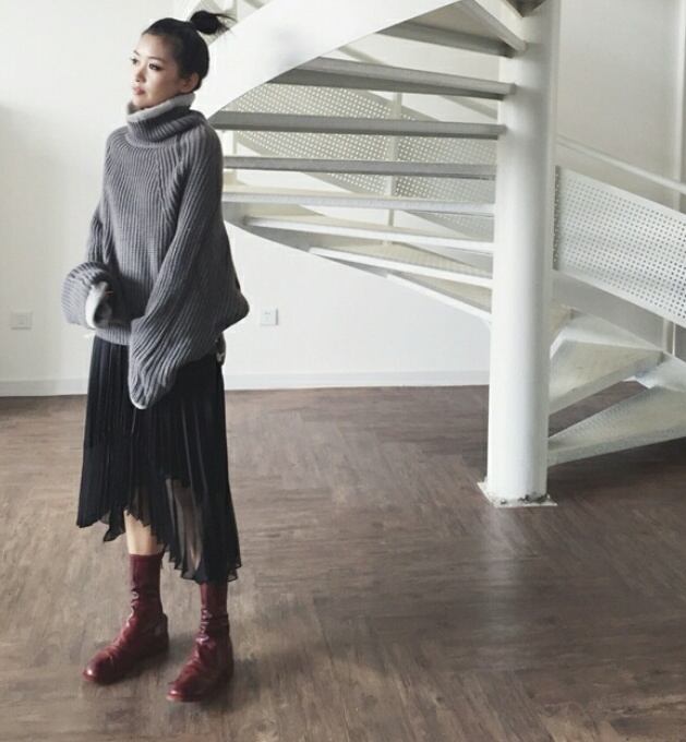 新作オシャレ♪2色/バイカラーオーバーニットプルオーバー