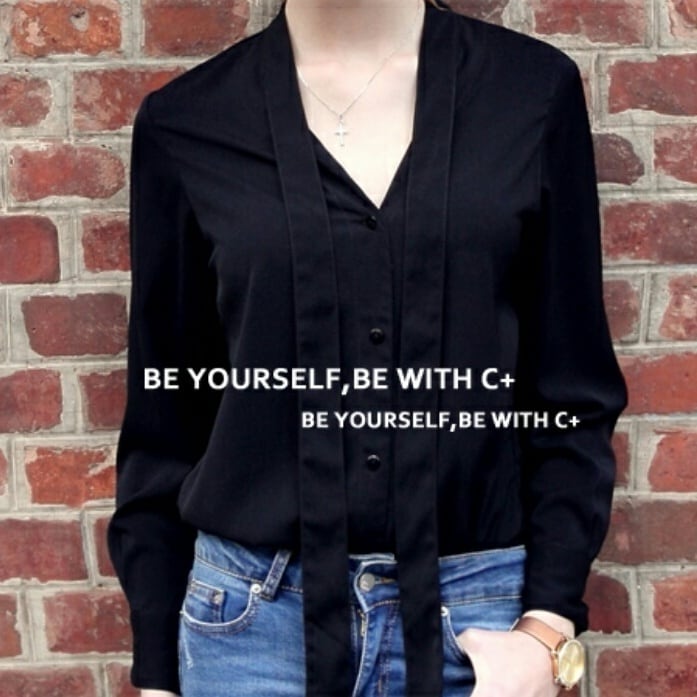新作 オシャレ♪シンプル/タイ付Vネックブラウス