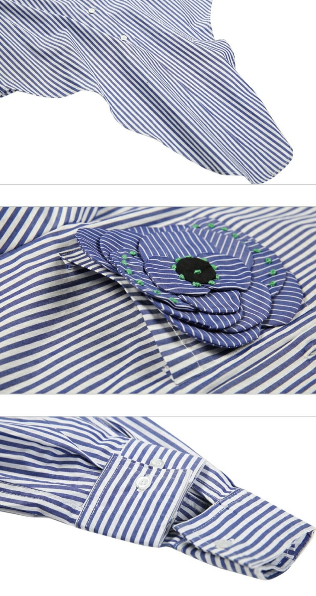 新作 オシャレ♪ストライプBIGフラワー付ブラウス