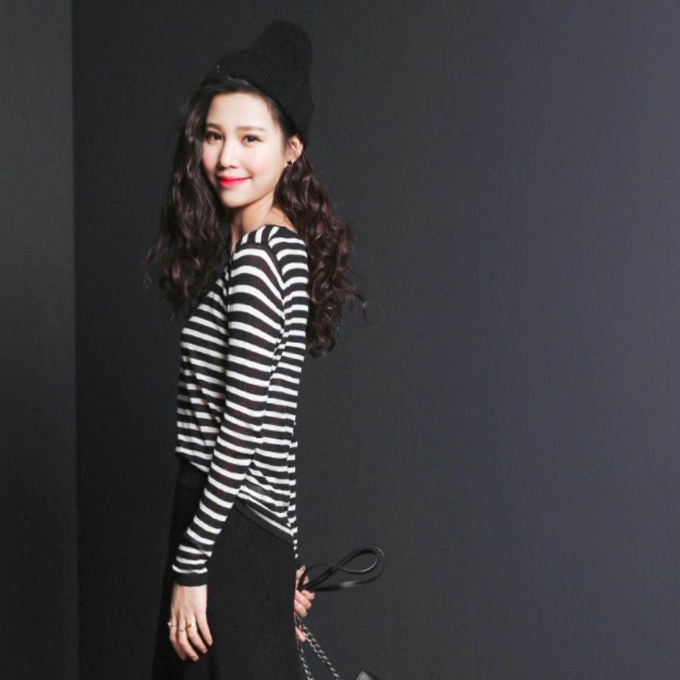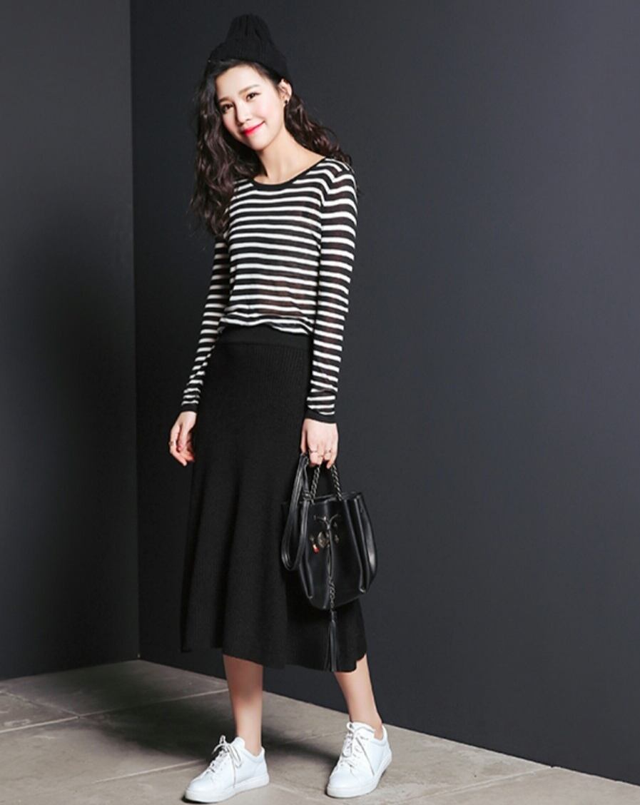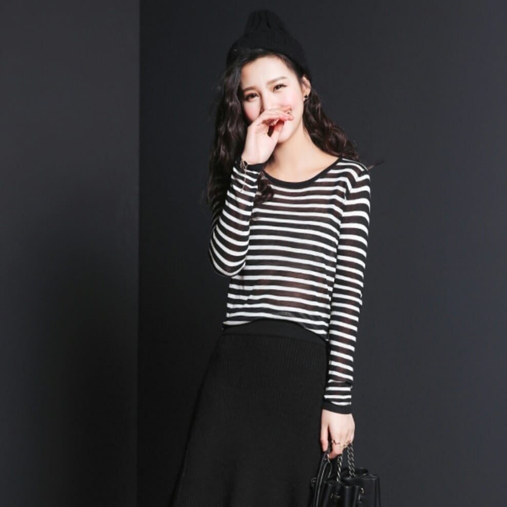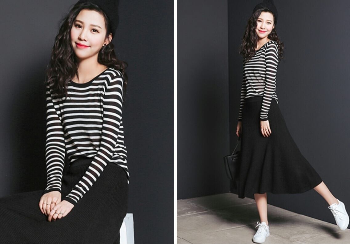 新作 オシャレ♪モノトーンボーダーニットトップス