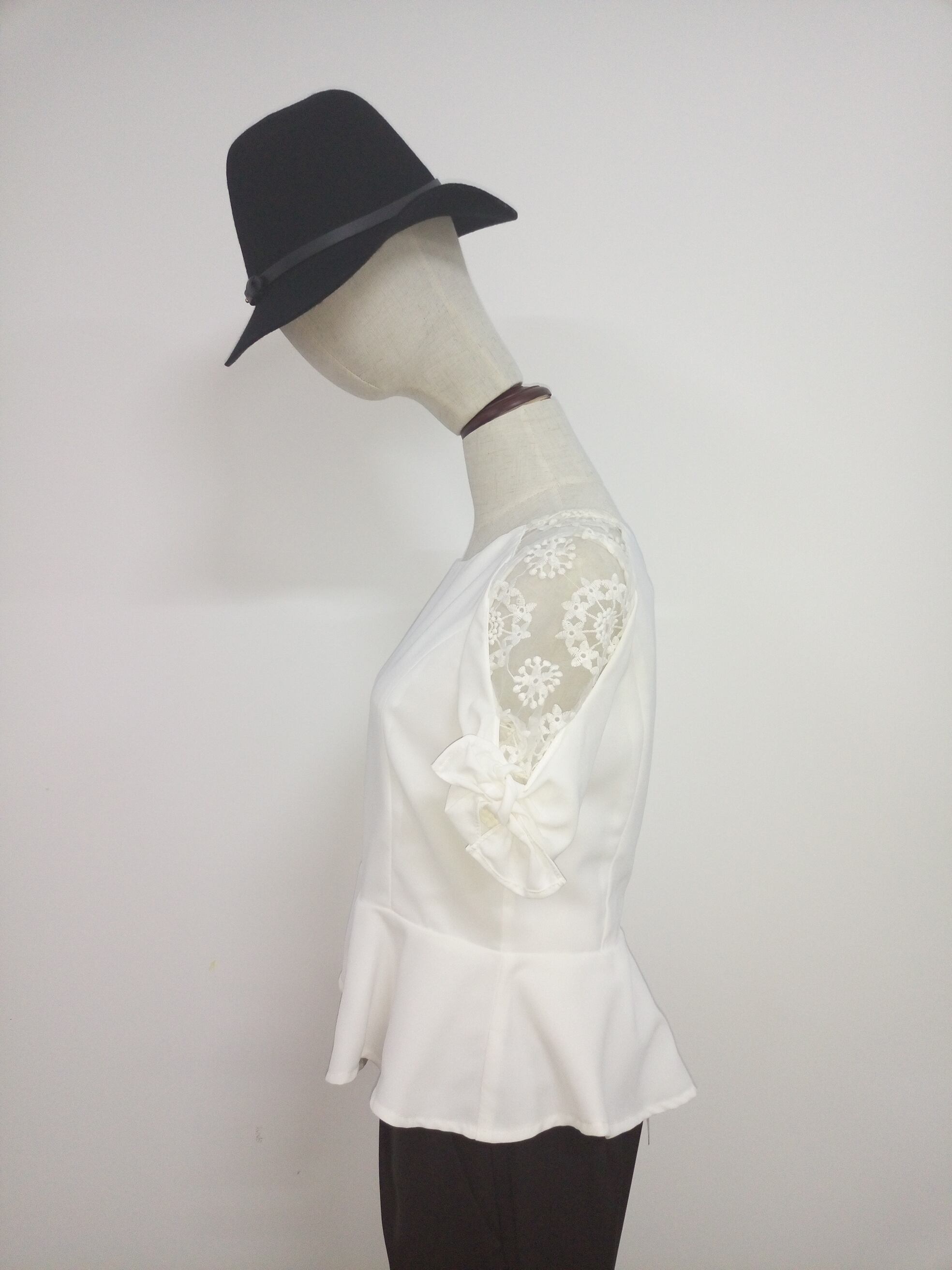 即納//ラブリー/ポイントリボン&シアーペプラムトップ