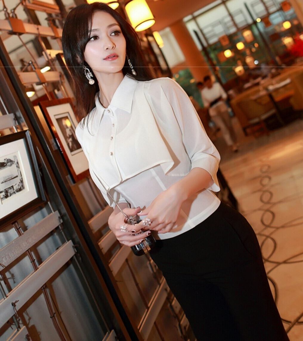 新作 オシャレ♪フェイクレイヤードレトロブラウス