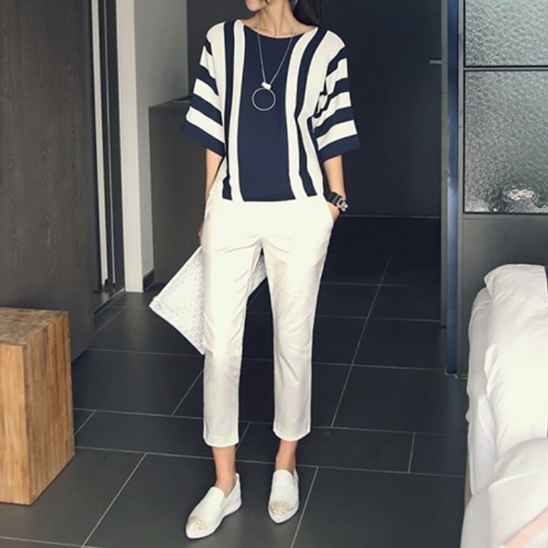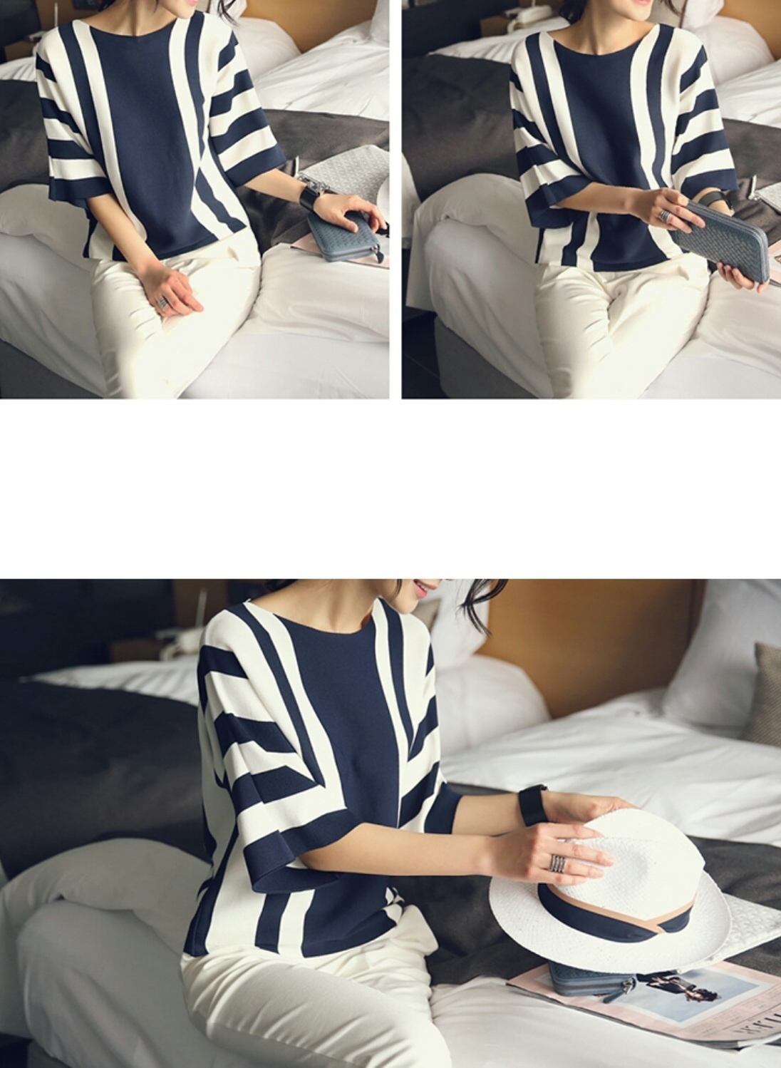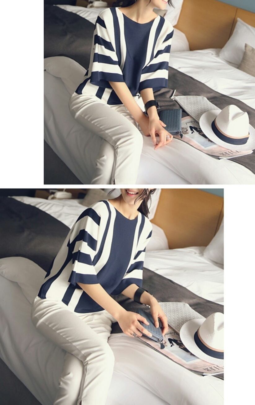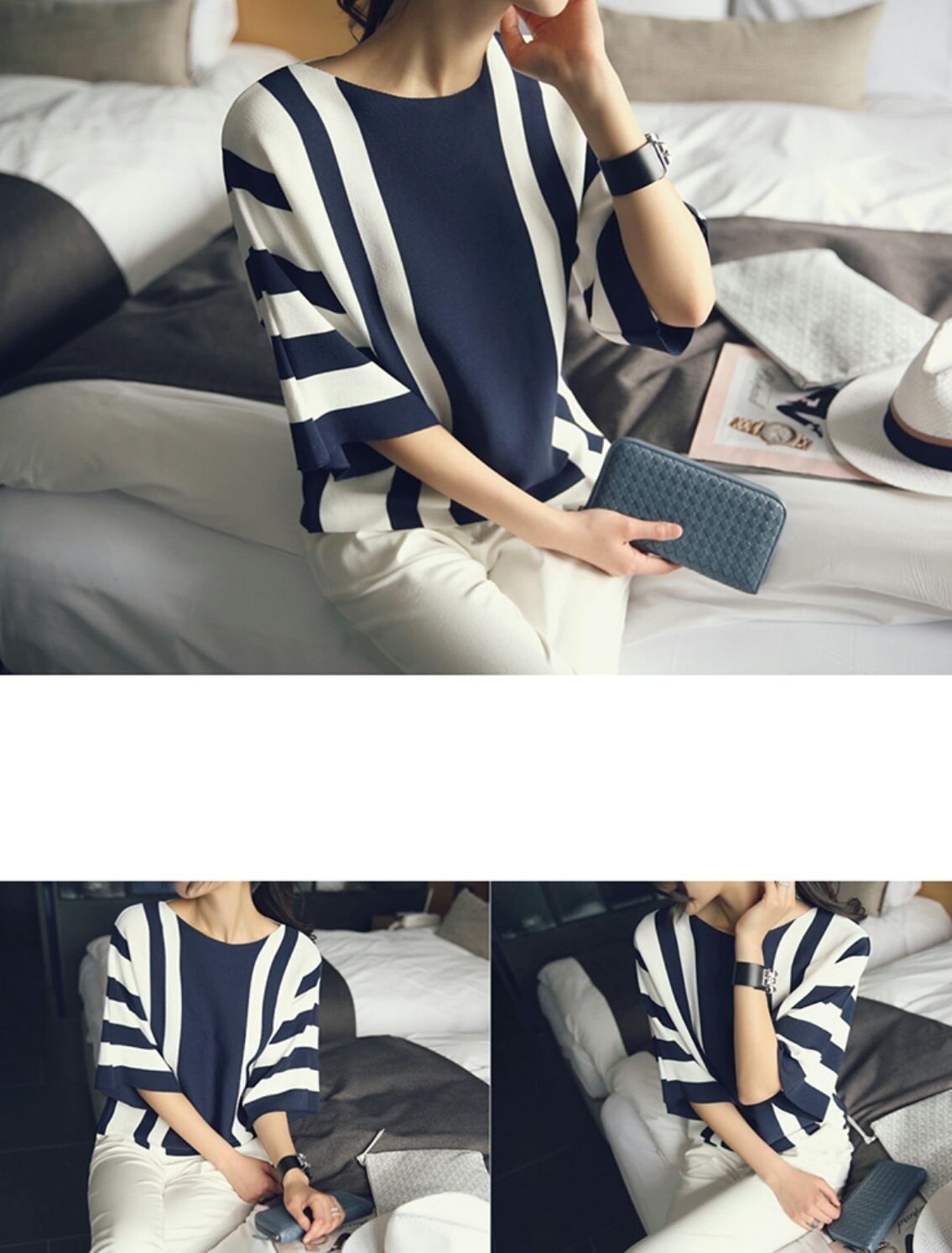 新作 オシャレ♪ボーダー&ストライプ切替トップス