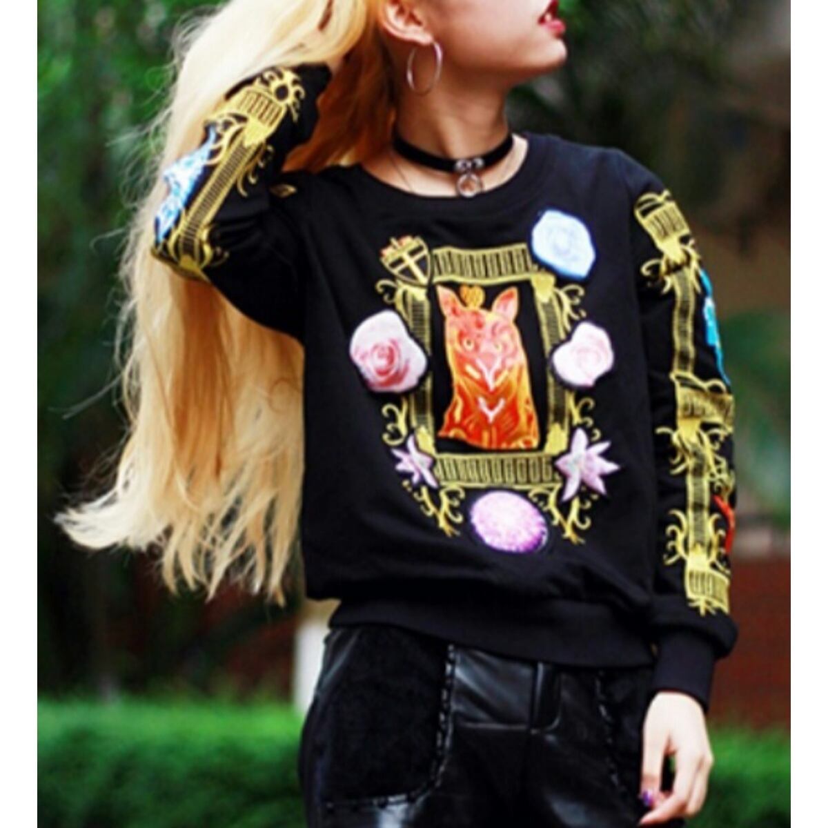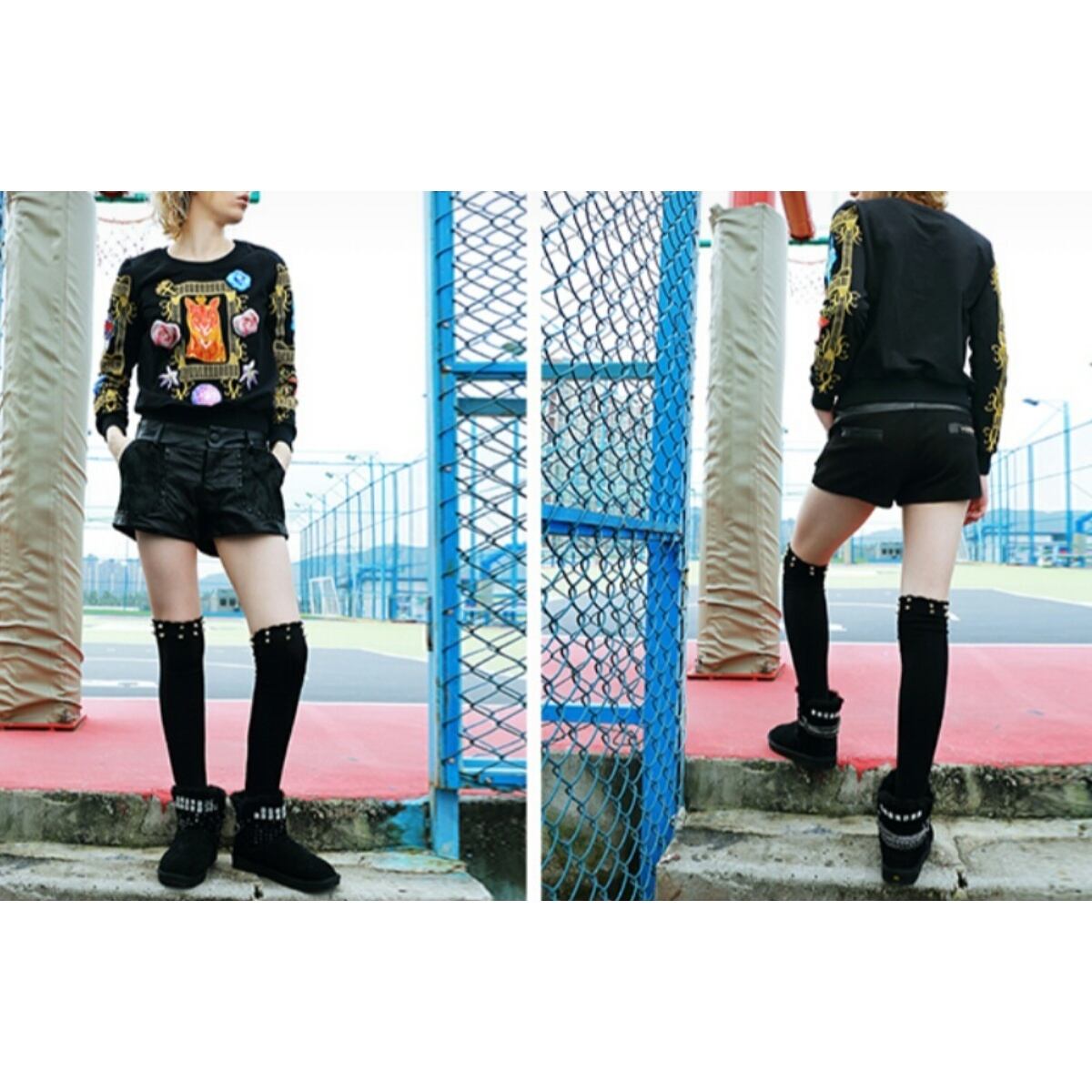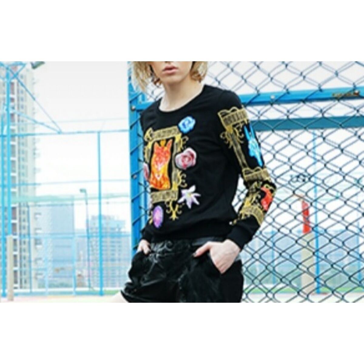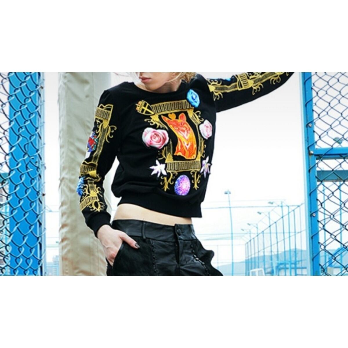 コーデの主役にユニーク模様ショート丈 トップス トレーナー