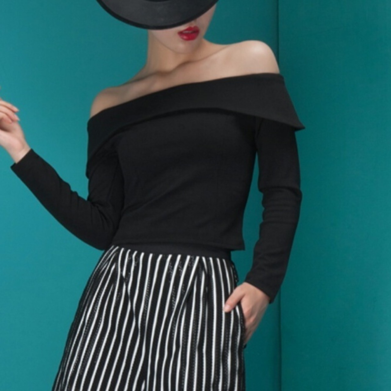コーデに抜け感をデコルテ強調のオフショルダートップス 白/黒