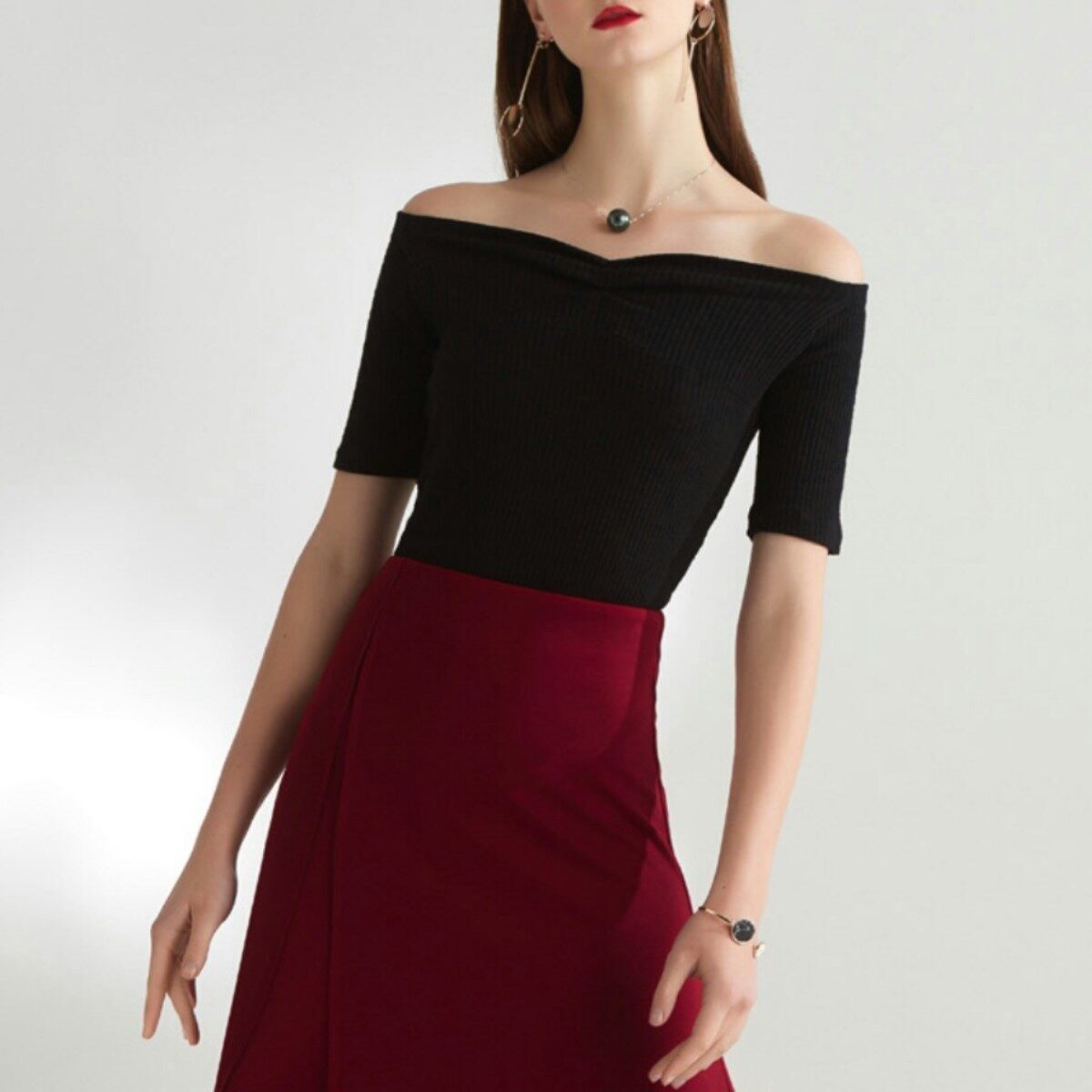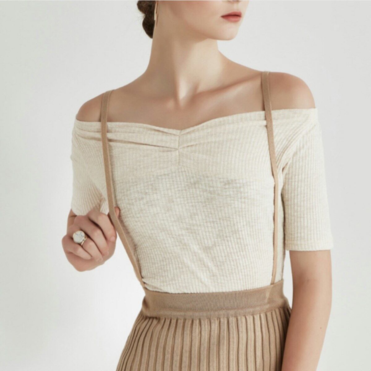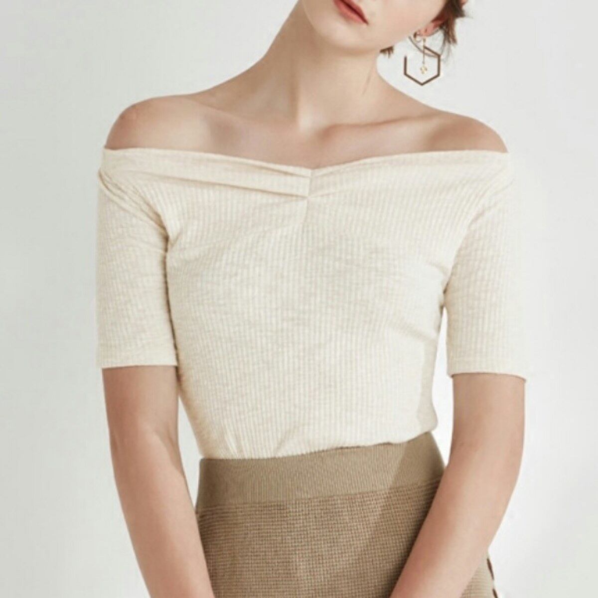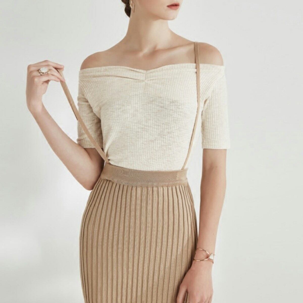 レイヤードにも1枚にも◎シンプルなオフショルダートップス