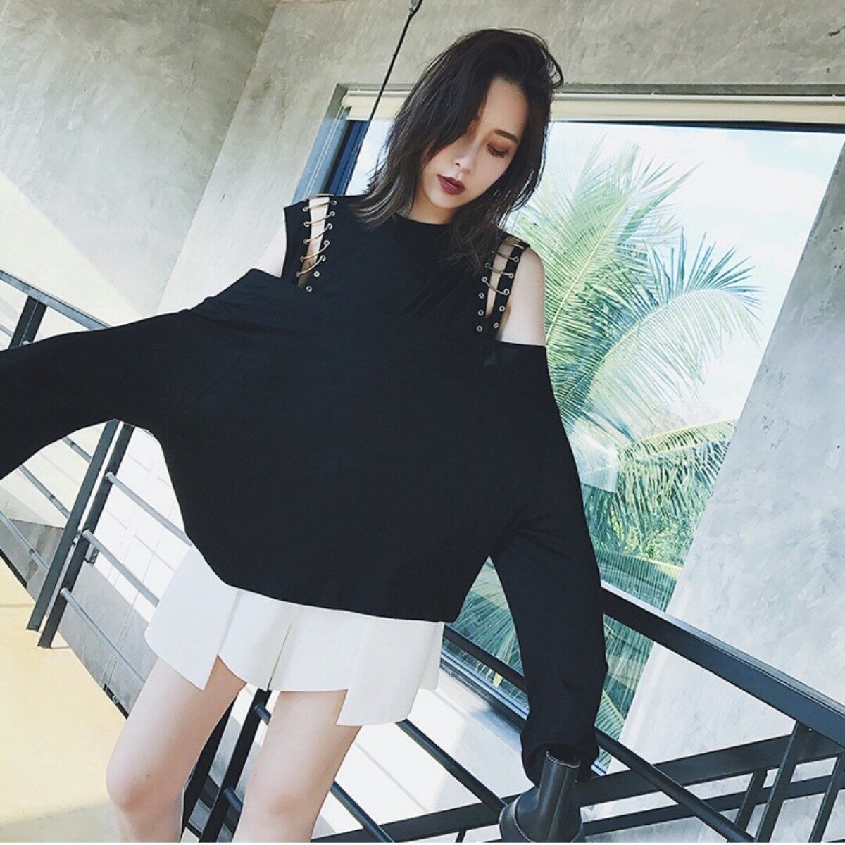 黒ベース遊心が魅力トップス+タンクトップのレイヤードセット