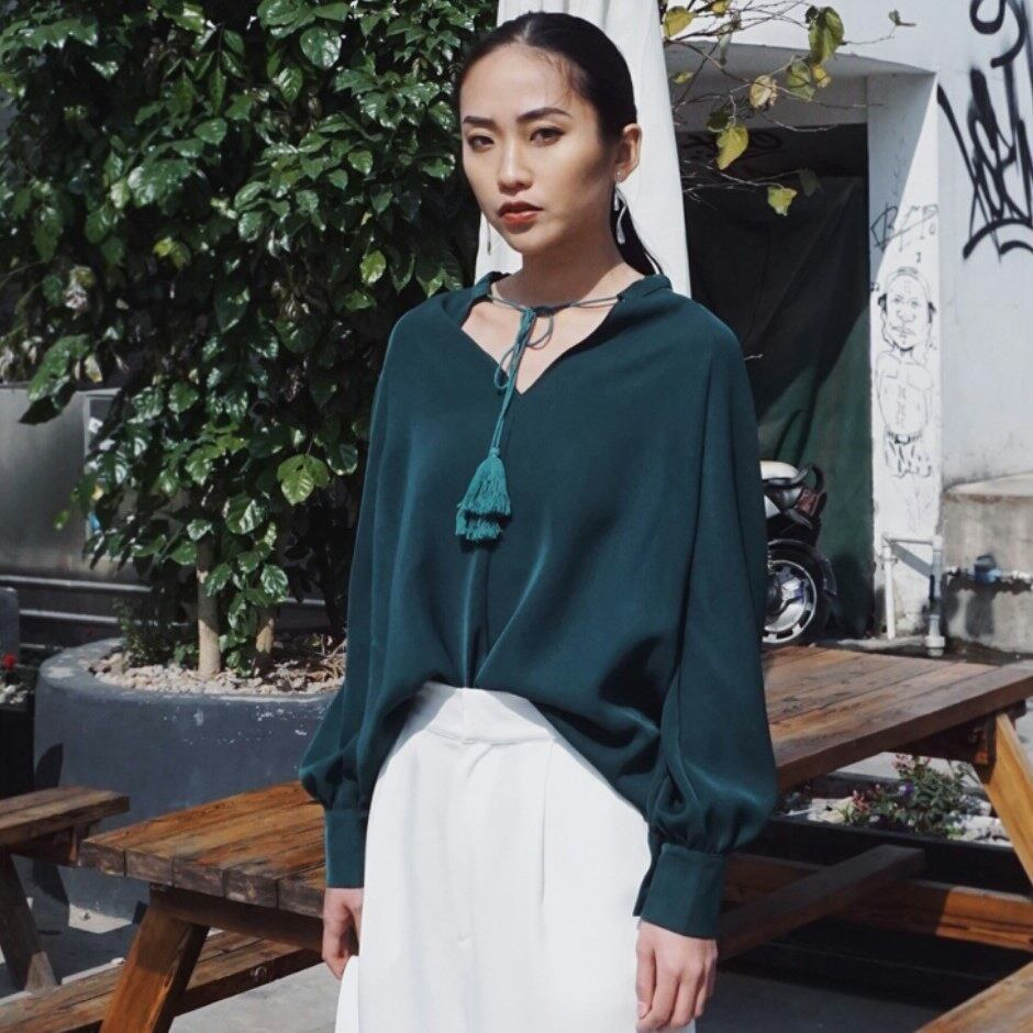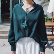 緑タッセル付でネックレスいらず大きいサイズのナチュラスシャツ