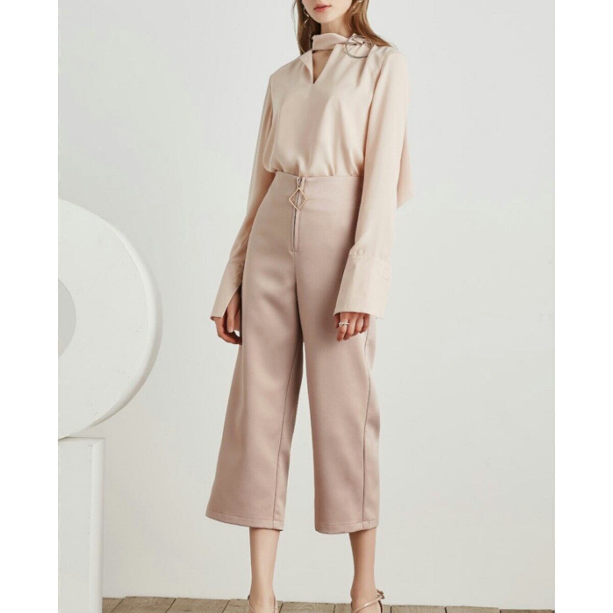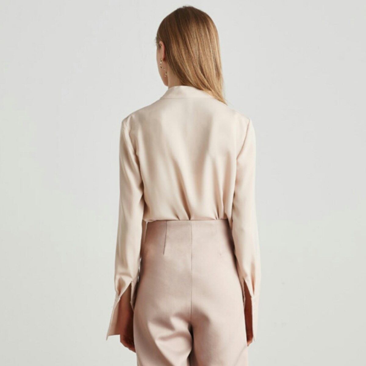 オフィスカジュアルに首元のデザインがおしゃれナチュラルシャツ