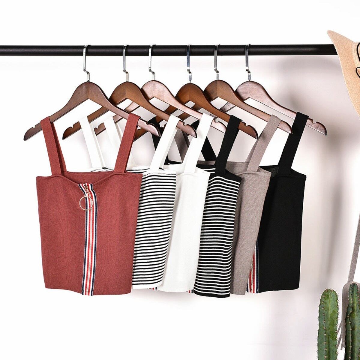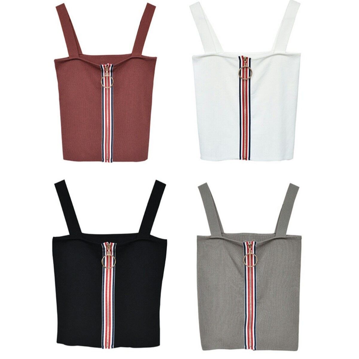 ジップ部分がポイント/ボーダー&無地2タイプキャミソール