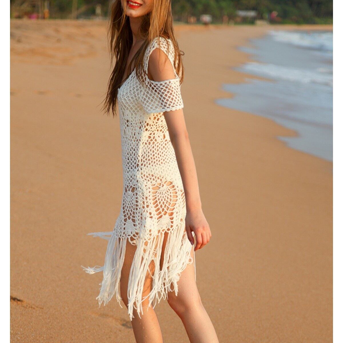 海やプールの水着コーデにおすすめ/ニットフリンジトップス