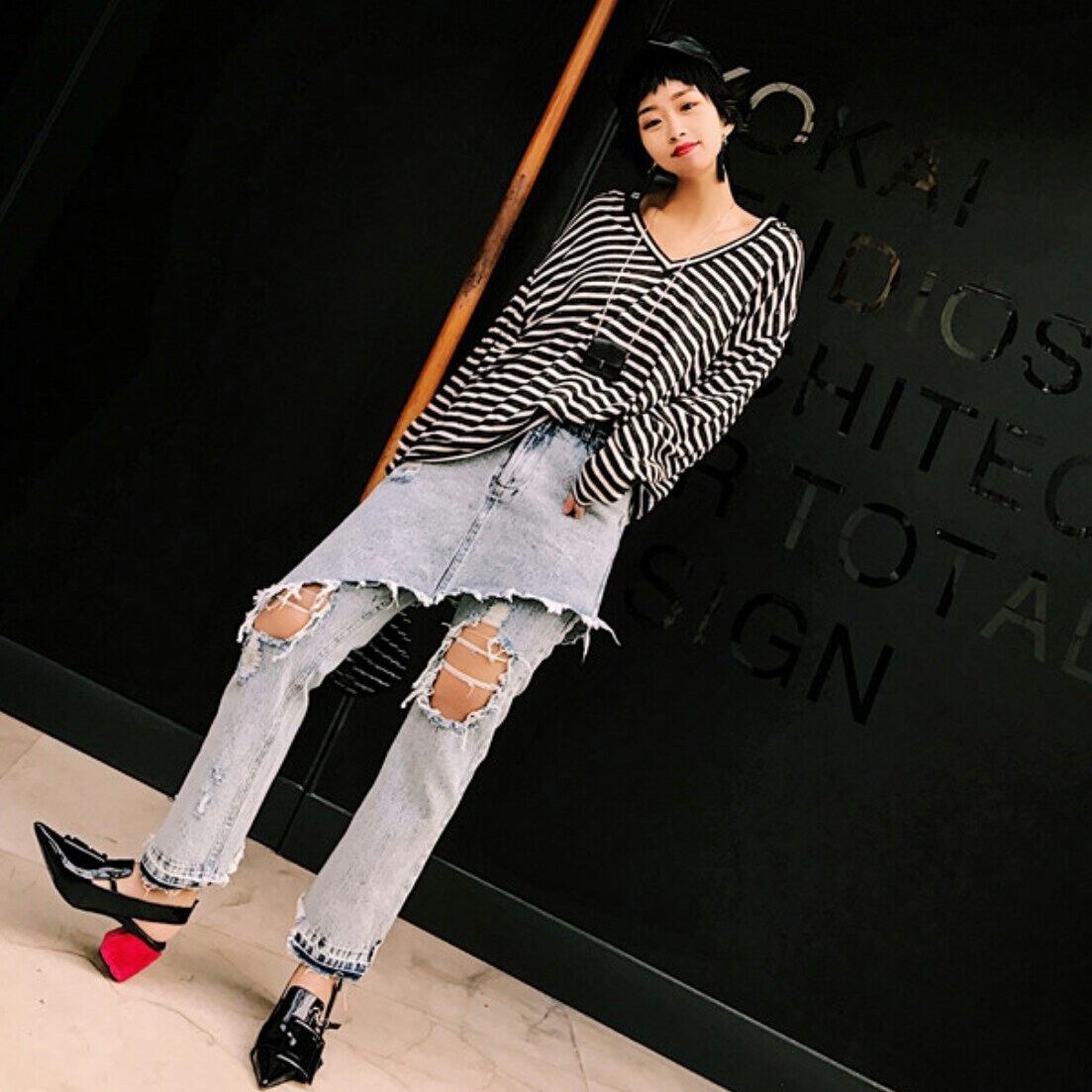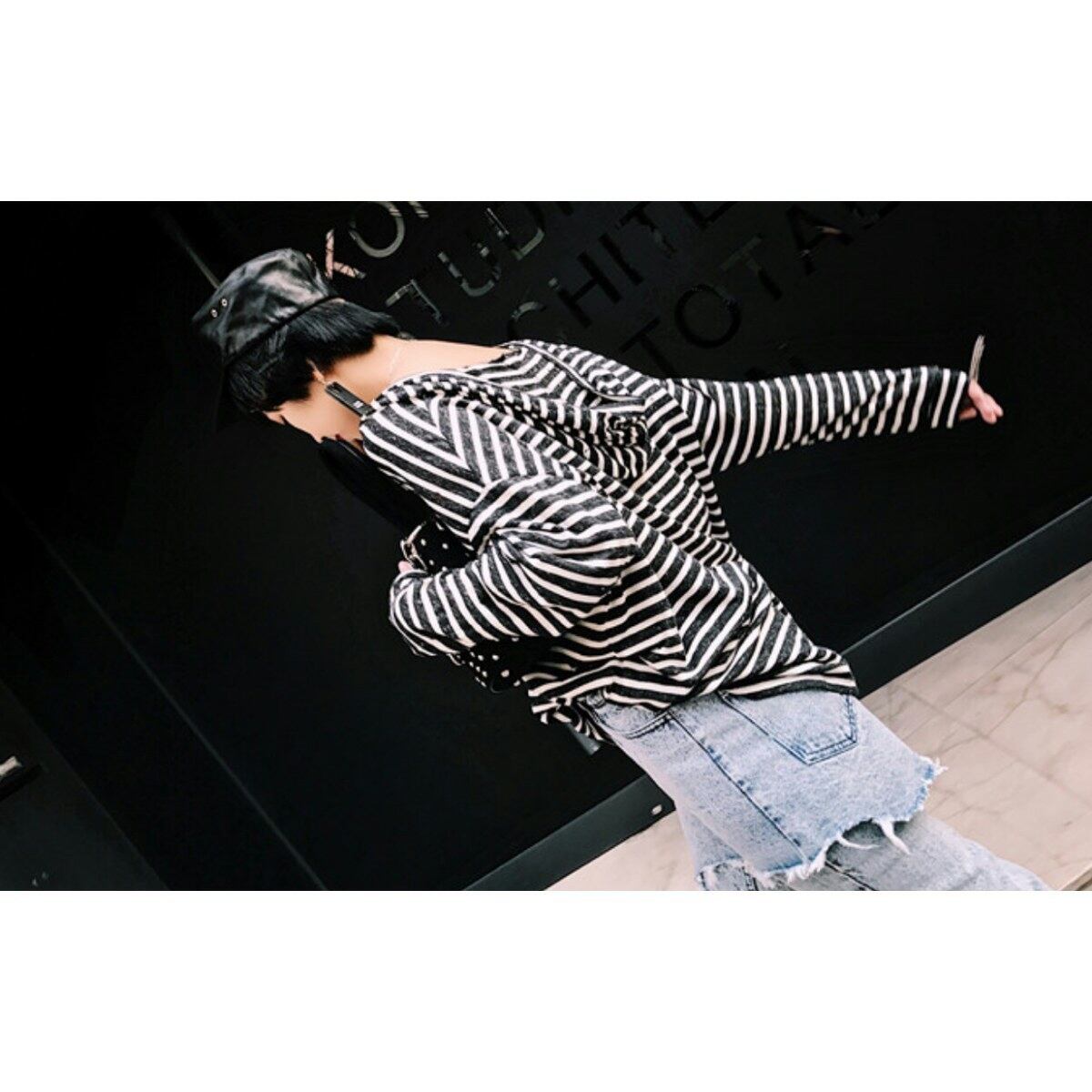 ざっくり着られる大きいサイズカジュアルフードボーダートップス