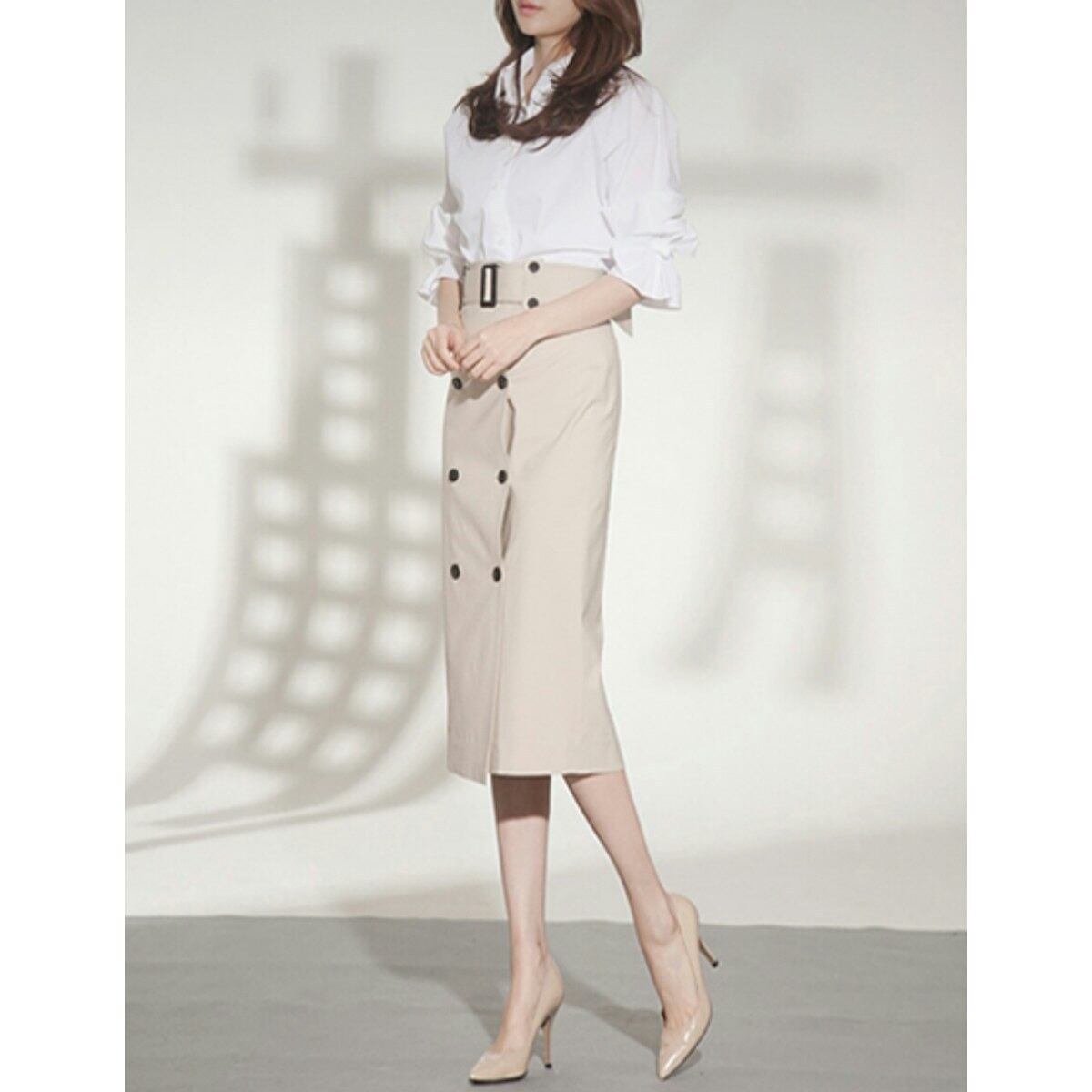 タックインにも◎袖のフォルムが女性らしい清潔感ある白ブラウス