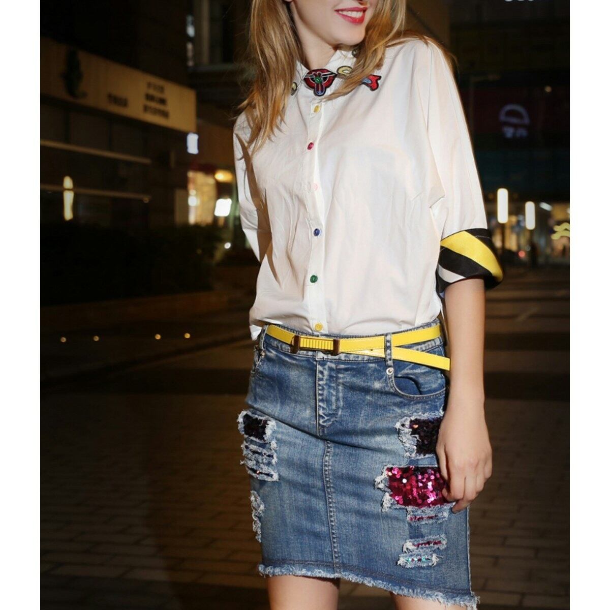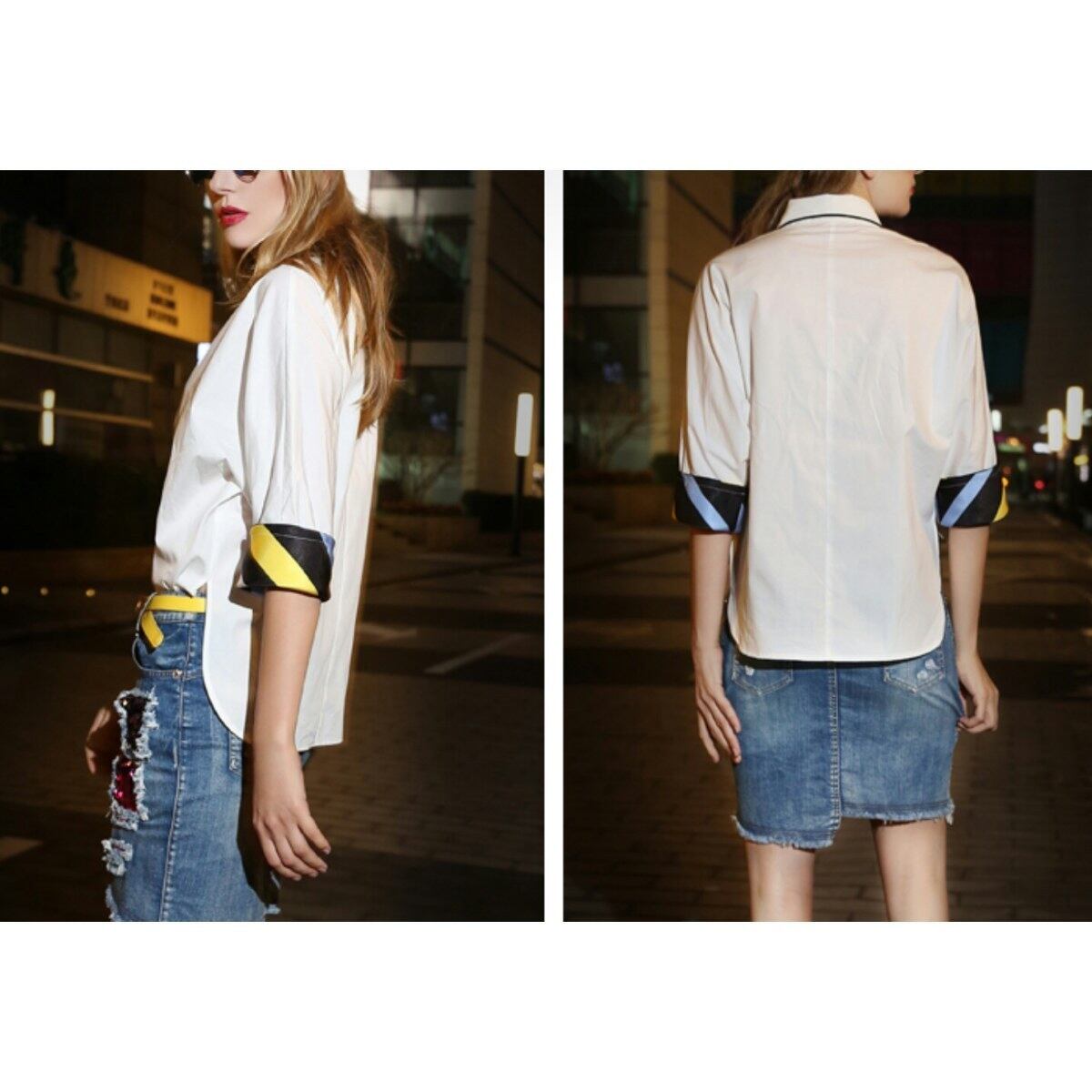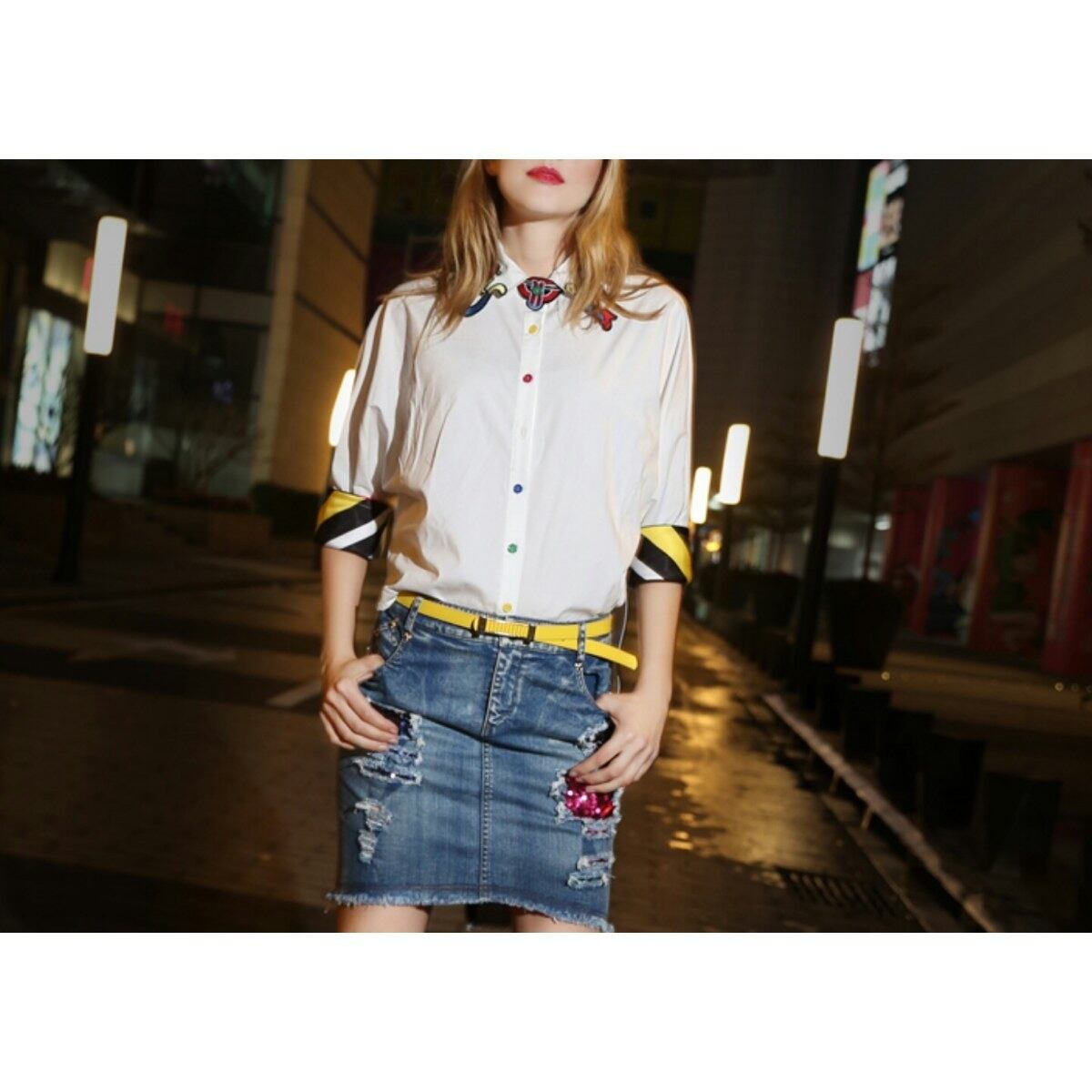 ポイントデザインに拘ったマルチカラー模様大きいサイズブラウス
