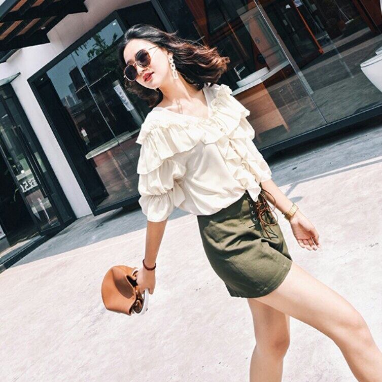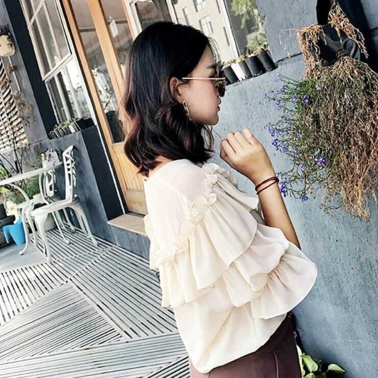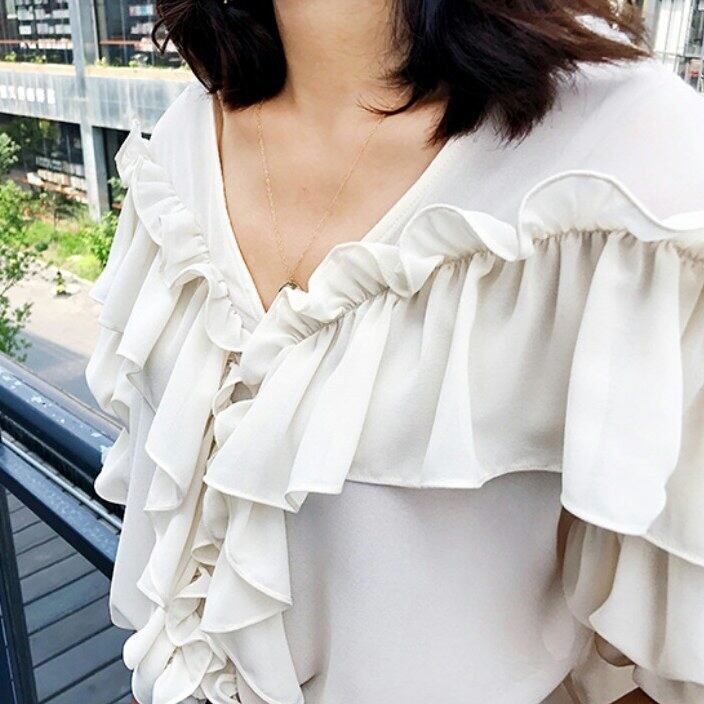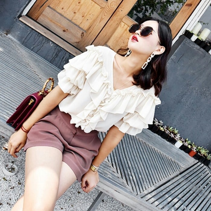 フリル&ドレープでレトロでガーリーコーデ/Vネックトップス