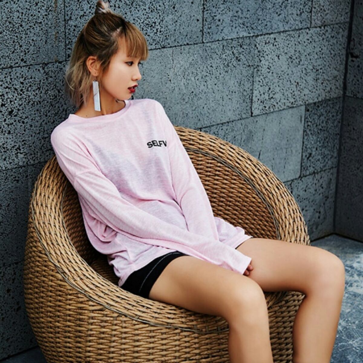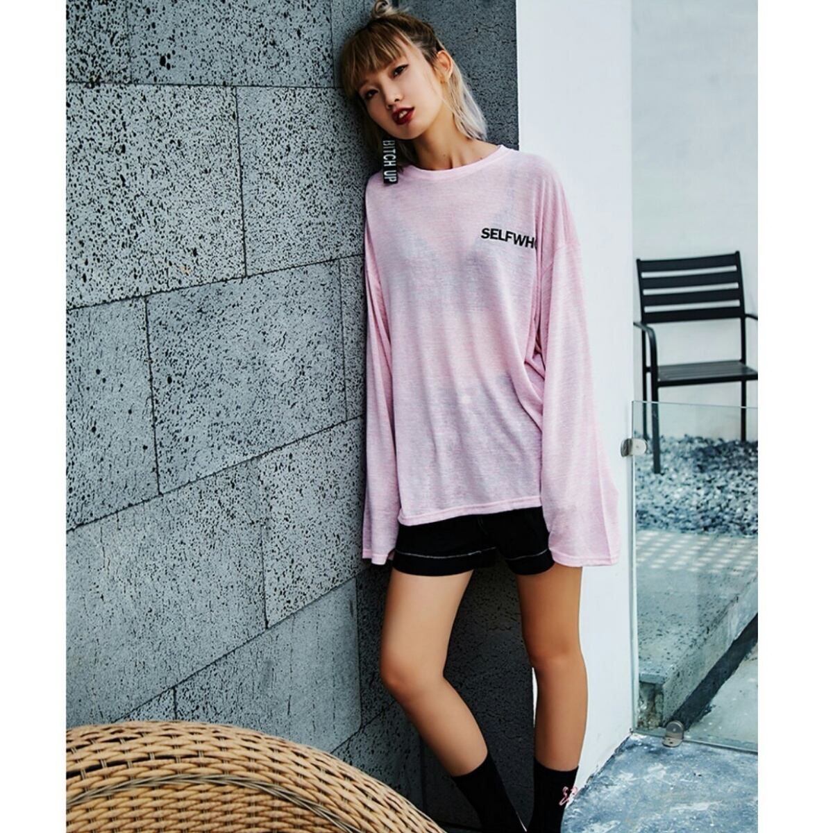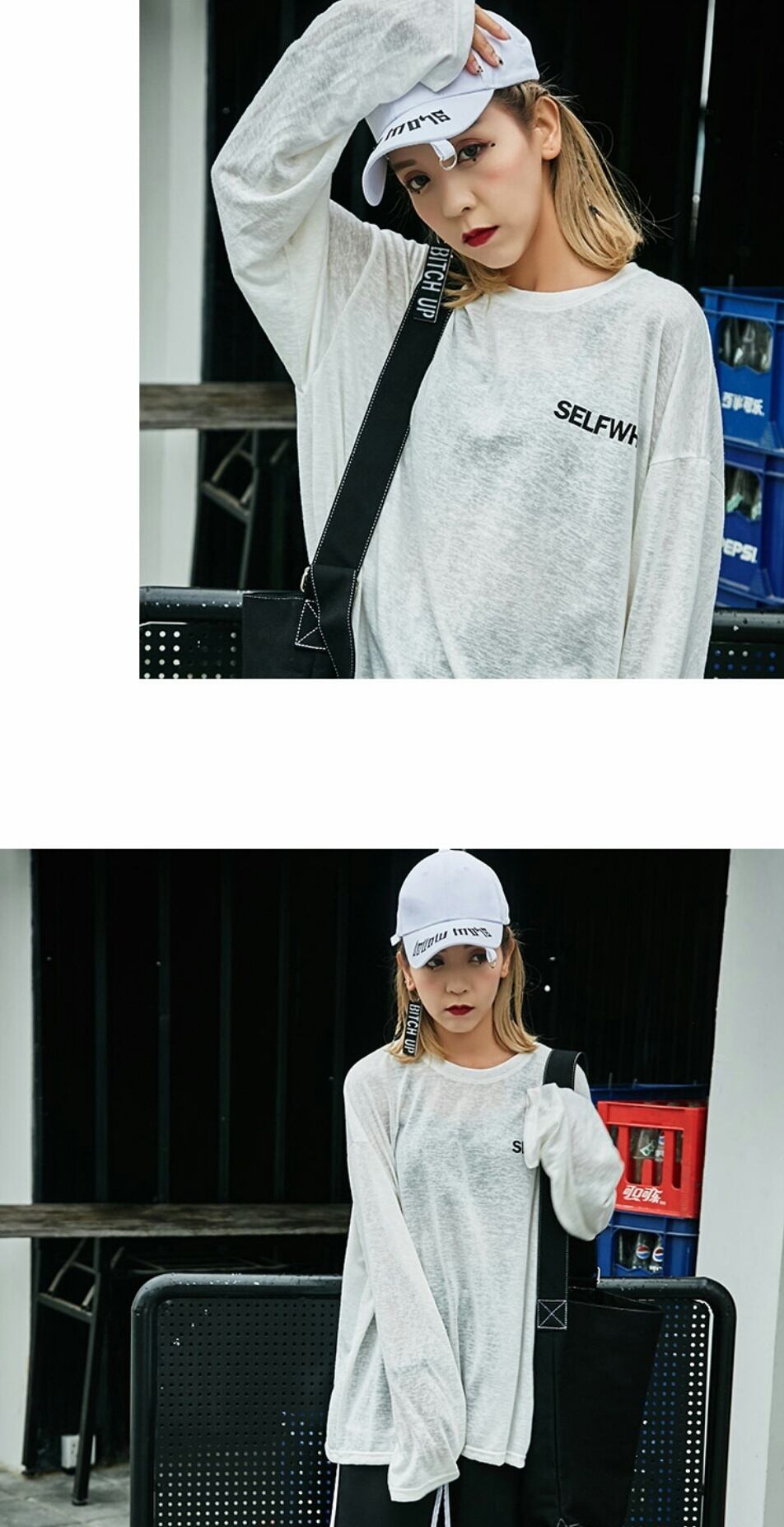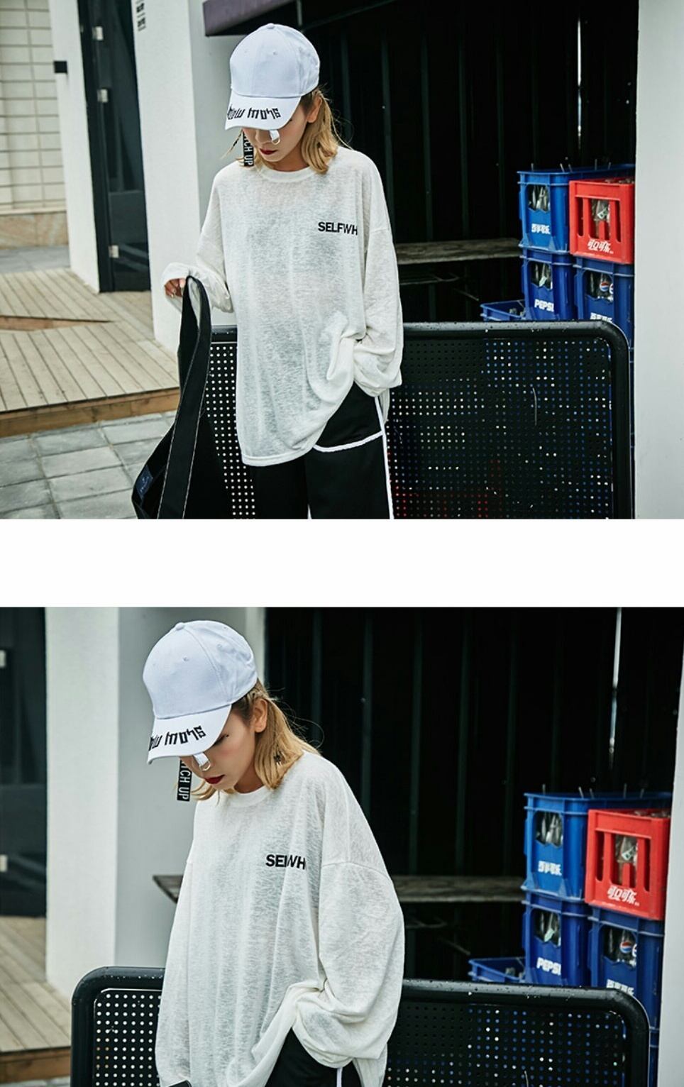 インナーのニュアンスが楽しい大きいサイズ薄手素材長袖Tシャツ