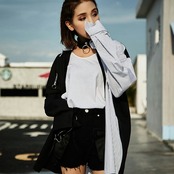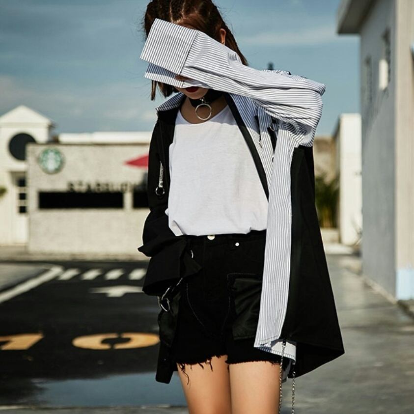無地&ストライプのデザインの凝ったオーバーサイズロゴシャツ