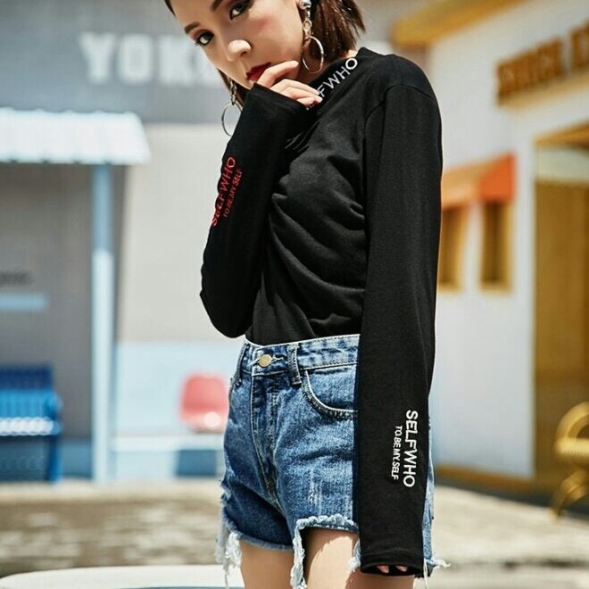 襟&袖ロゴがアクセントのかっこいいハイネック黒トップス