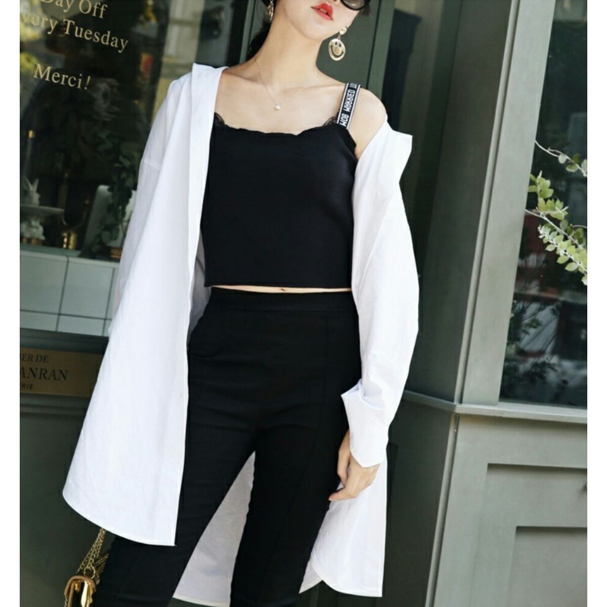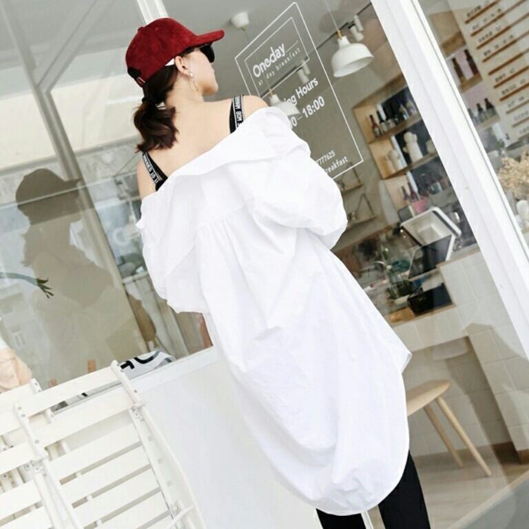 コーデの幅広がるラフなオーバーサイズ白のシンプルなブラウス