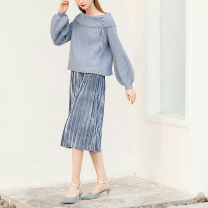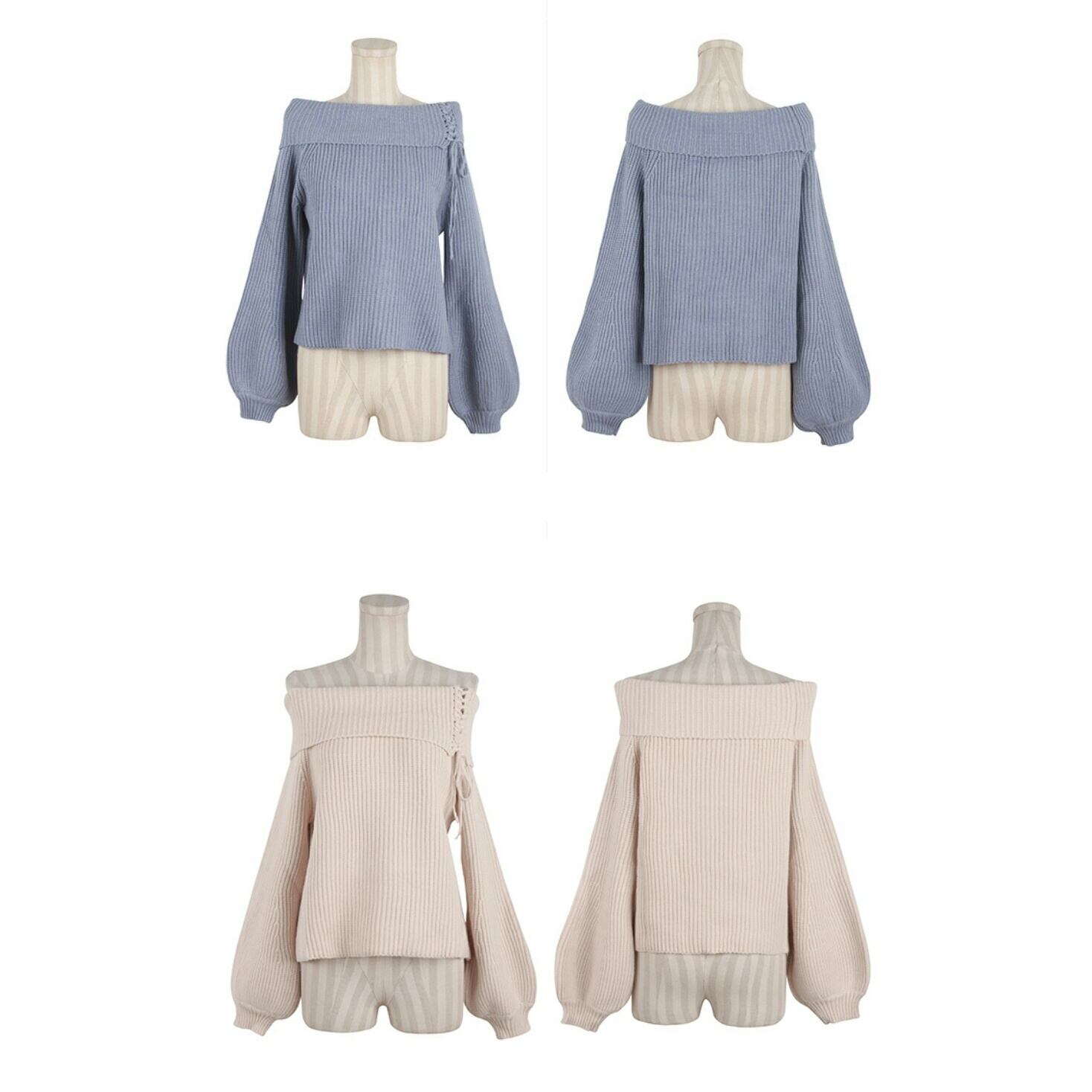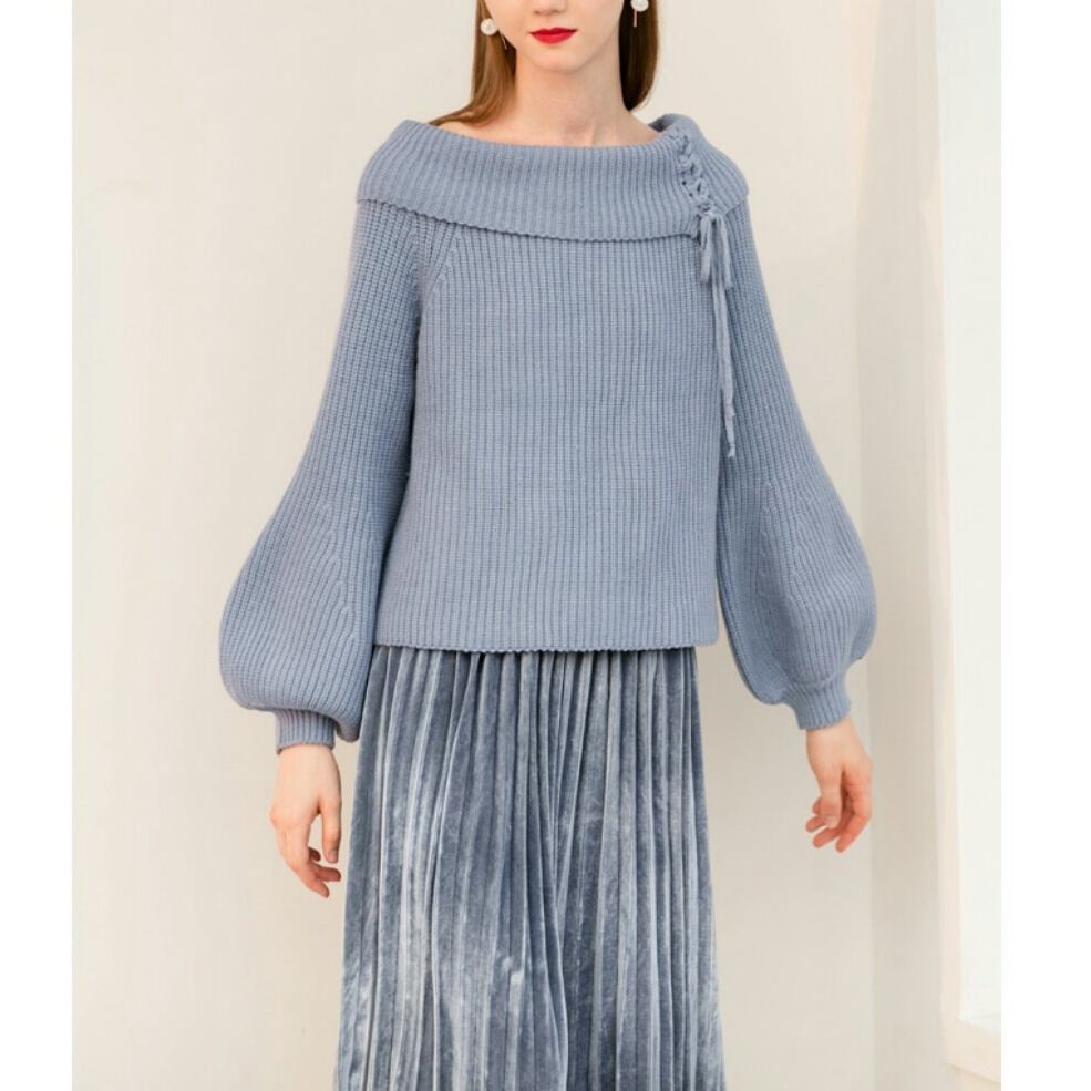 袖ボリュームフォルムが可愛いオフショルダー可能ニットトップス