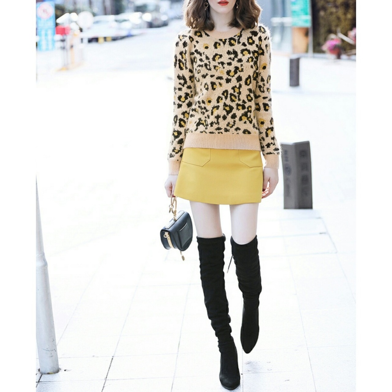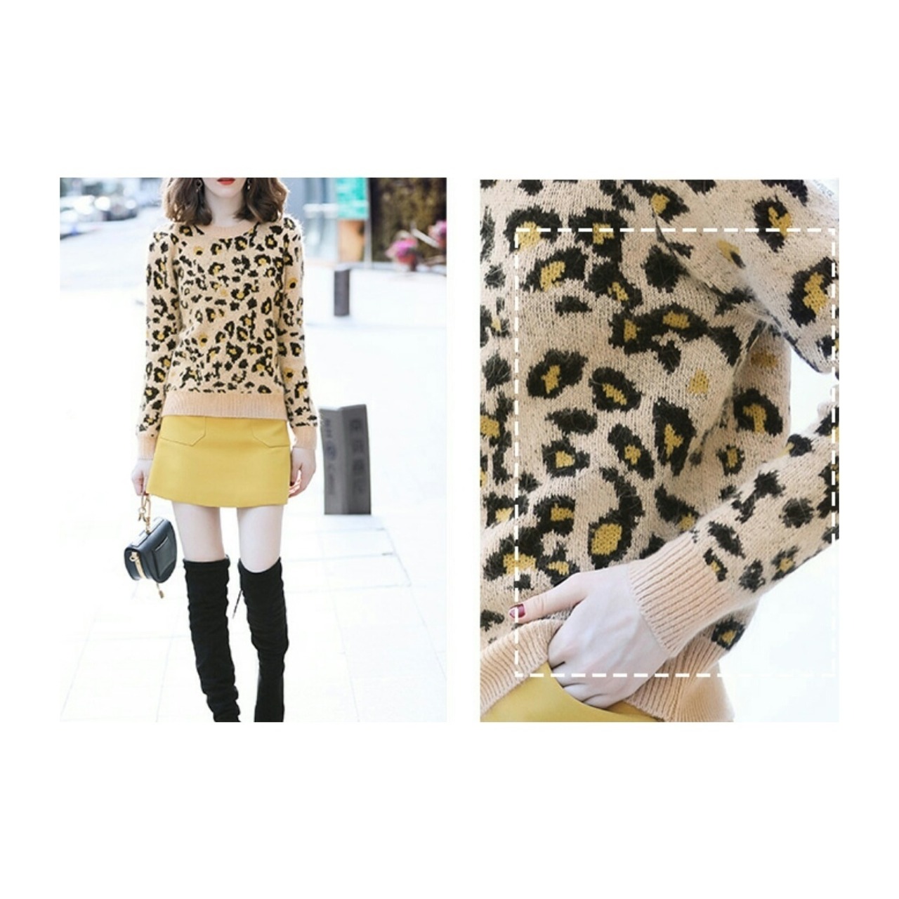 緑/ベージュ/茶の3種類のレオパード柄ニットプルオーバー