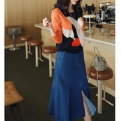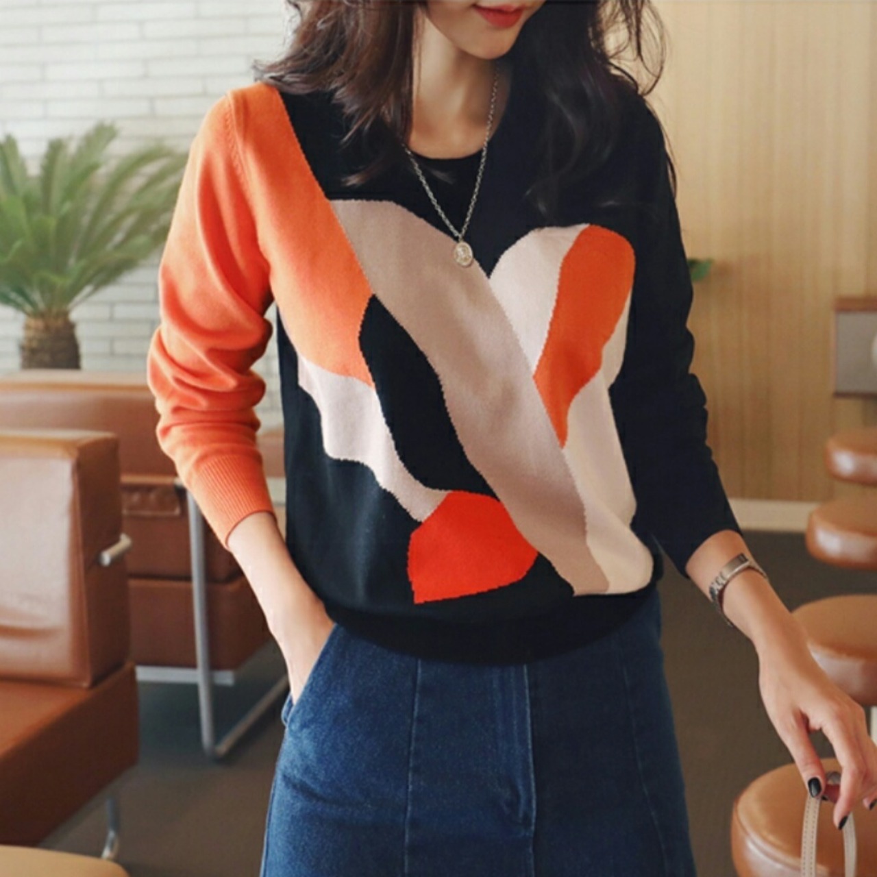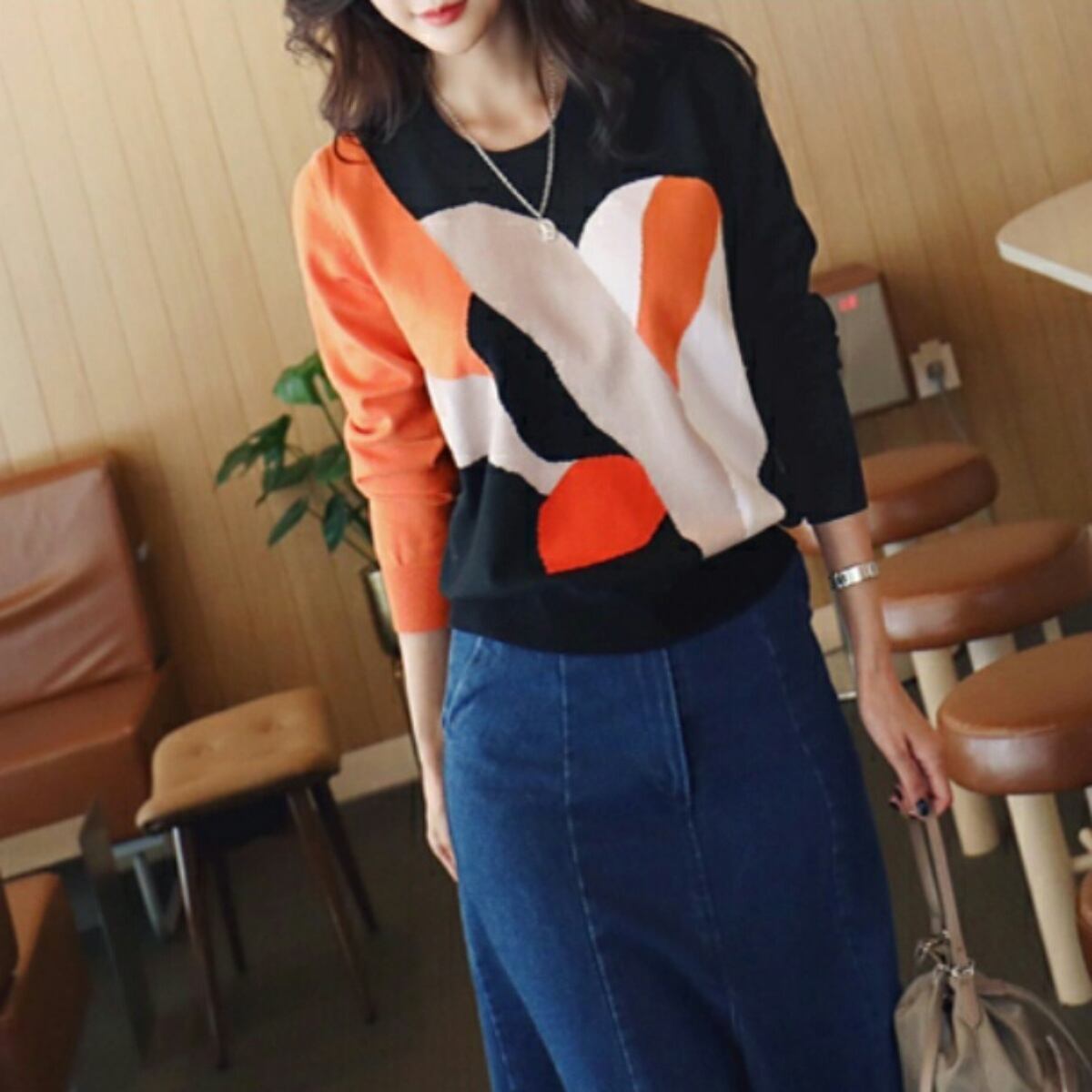マルチカラー抽象柄のアシンメトリーなカラーニットプルオーバー