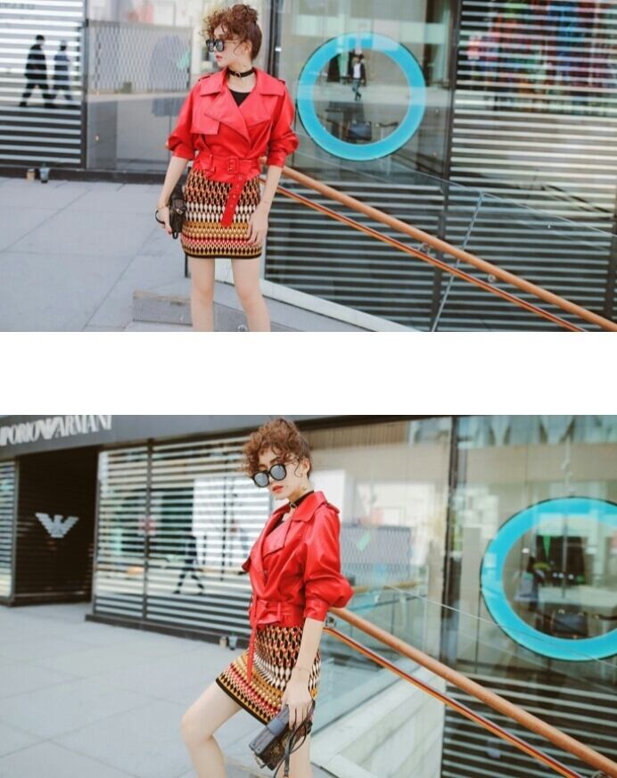 柔らかいフォルムとベルトがおしゃれなジャケット 黒/カーキ/赤