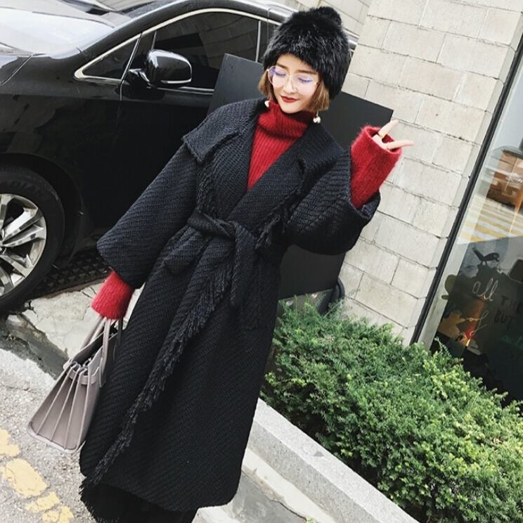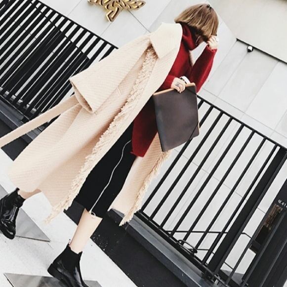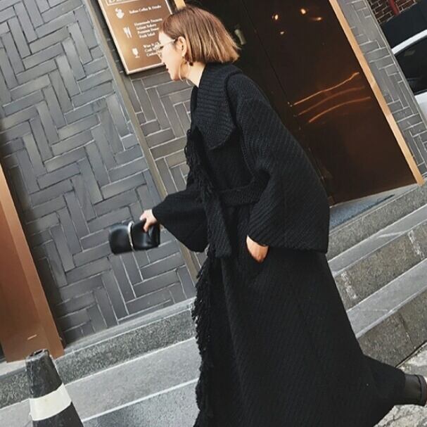コーデに合わせて調節/ベージュ/ブラックロングガウンコート