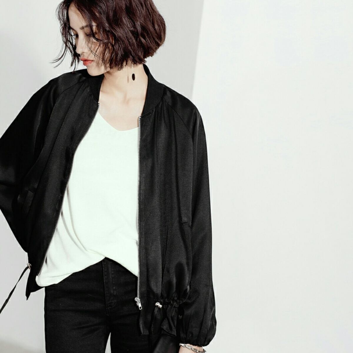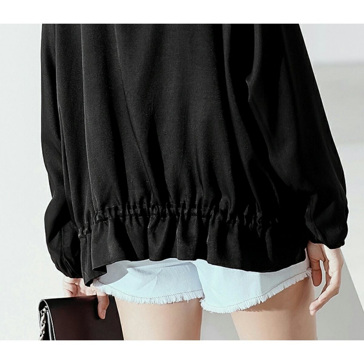 肩から袖のシルエット気にならないオーバーサイズ黒ブルゾン
