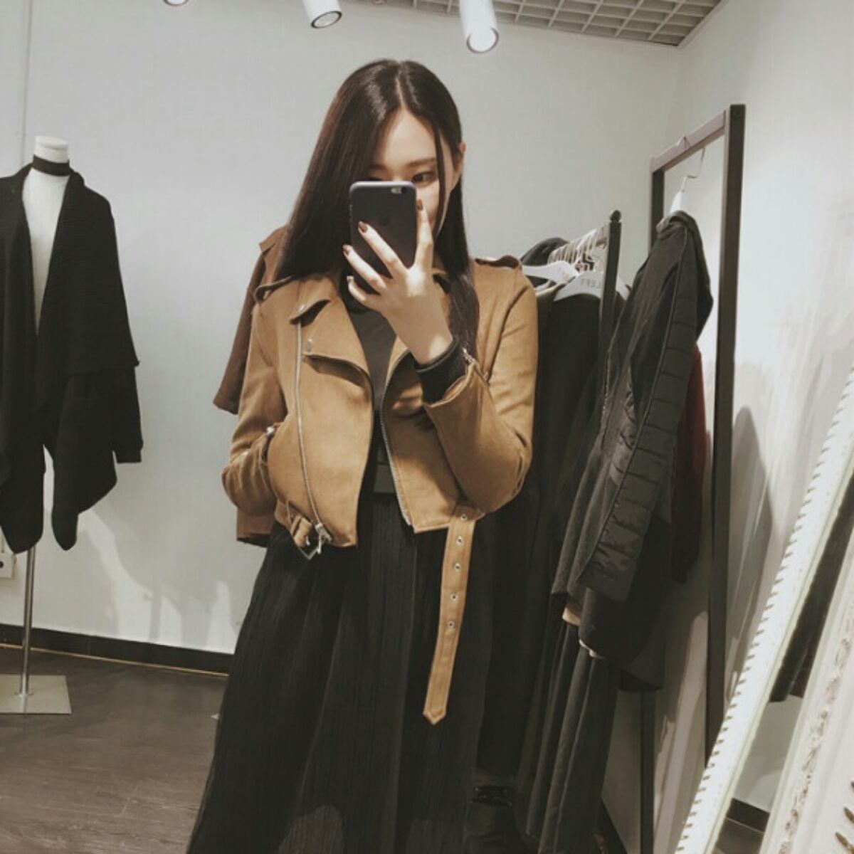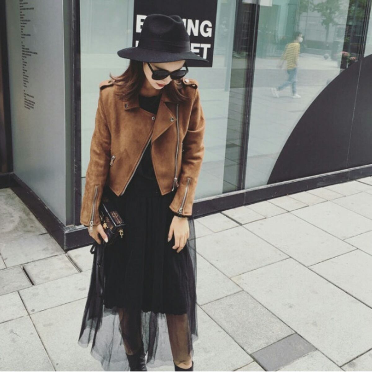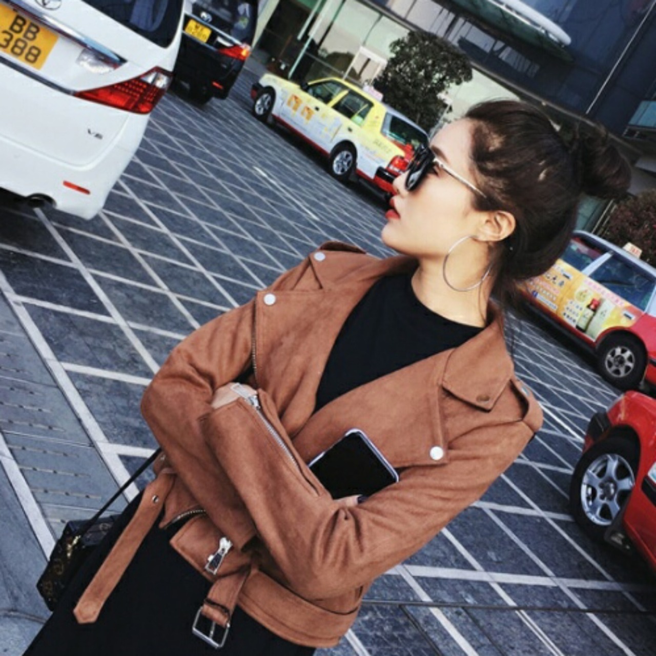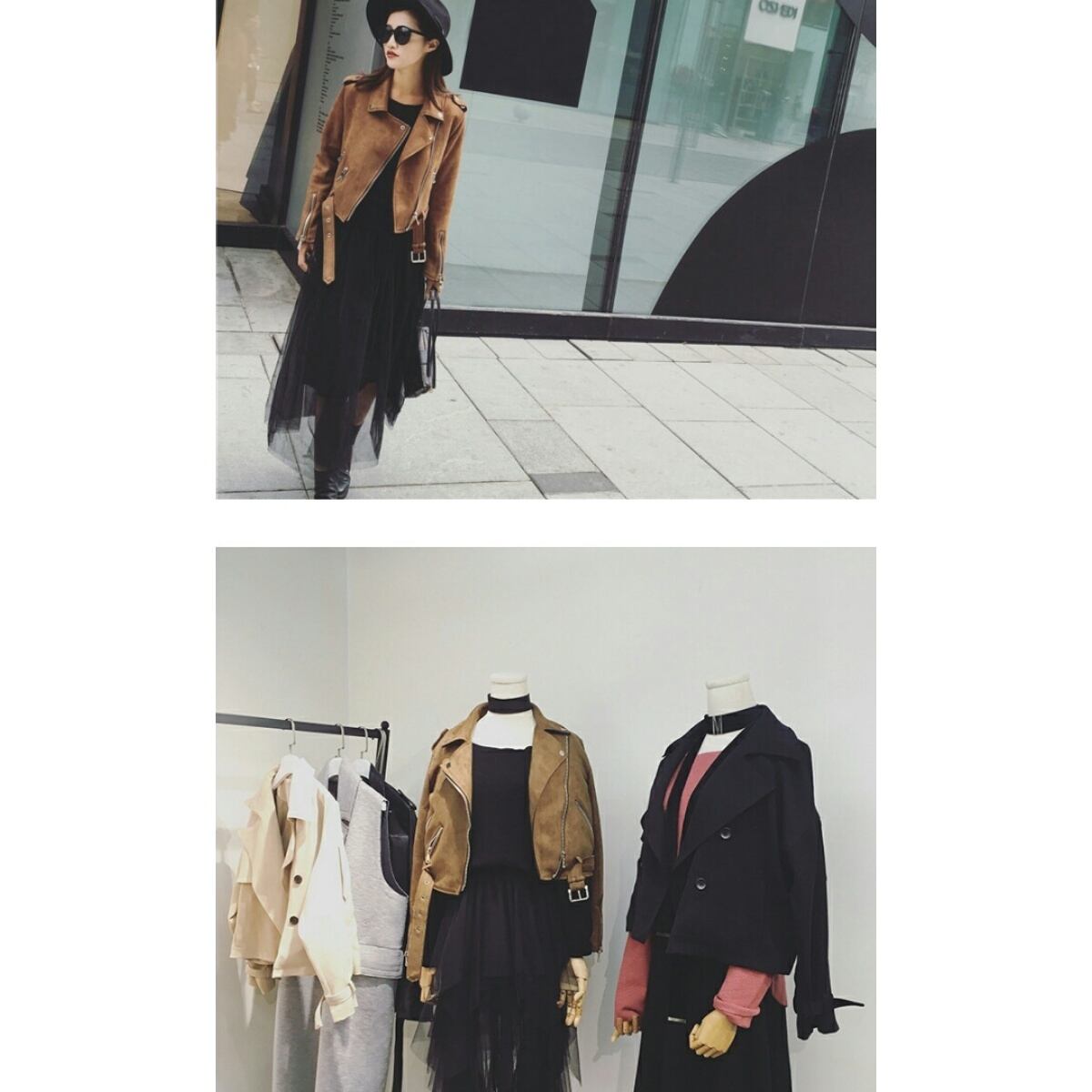 ジップアップのエッジのきいたスエード調ライダースジャケット