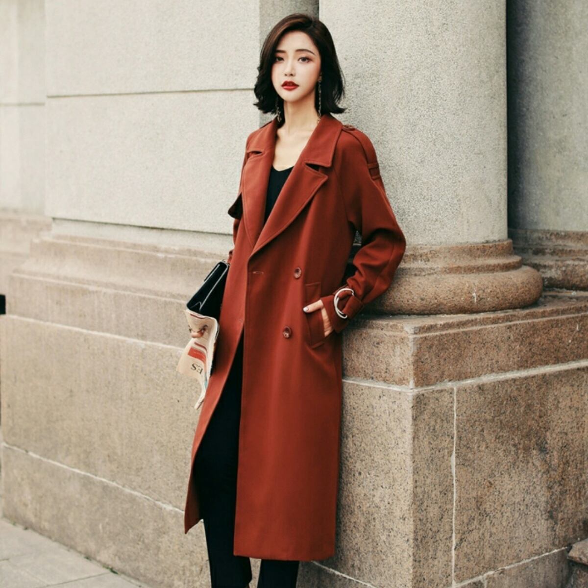 秋のオフィスカジュアルにも◎シンプルなフレアトレンチコート