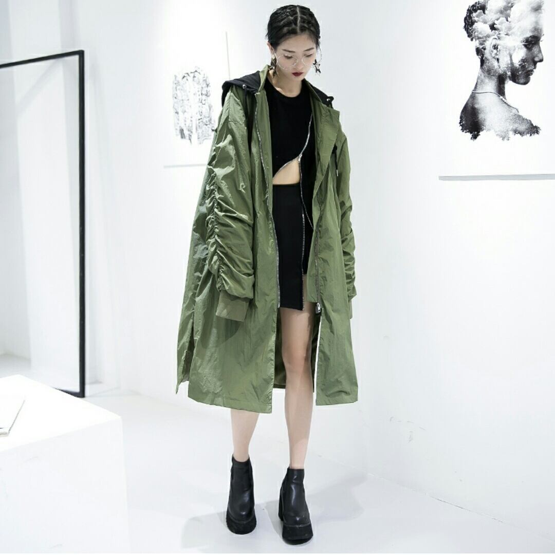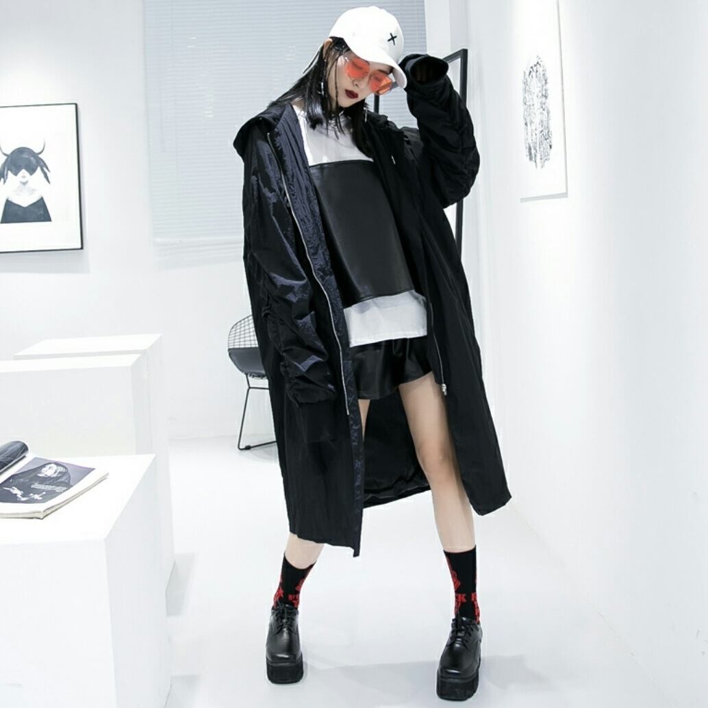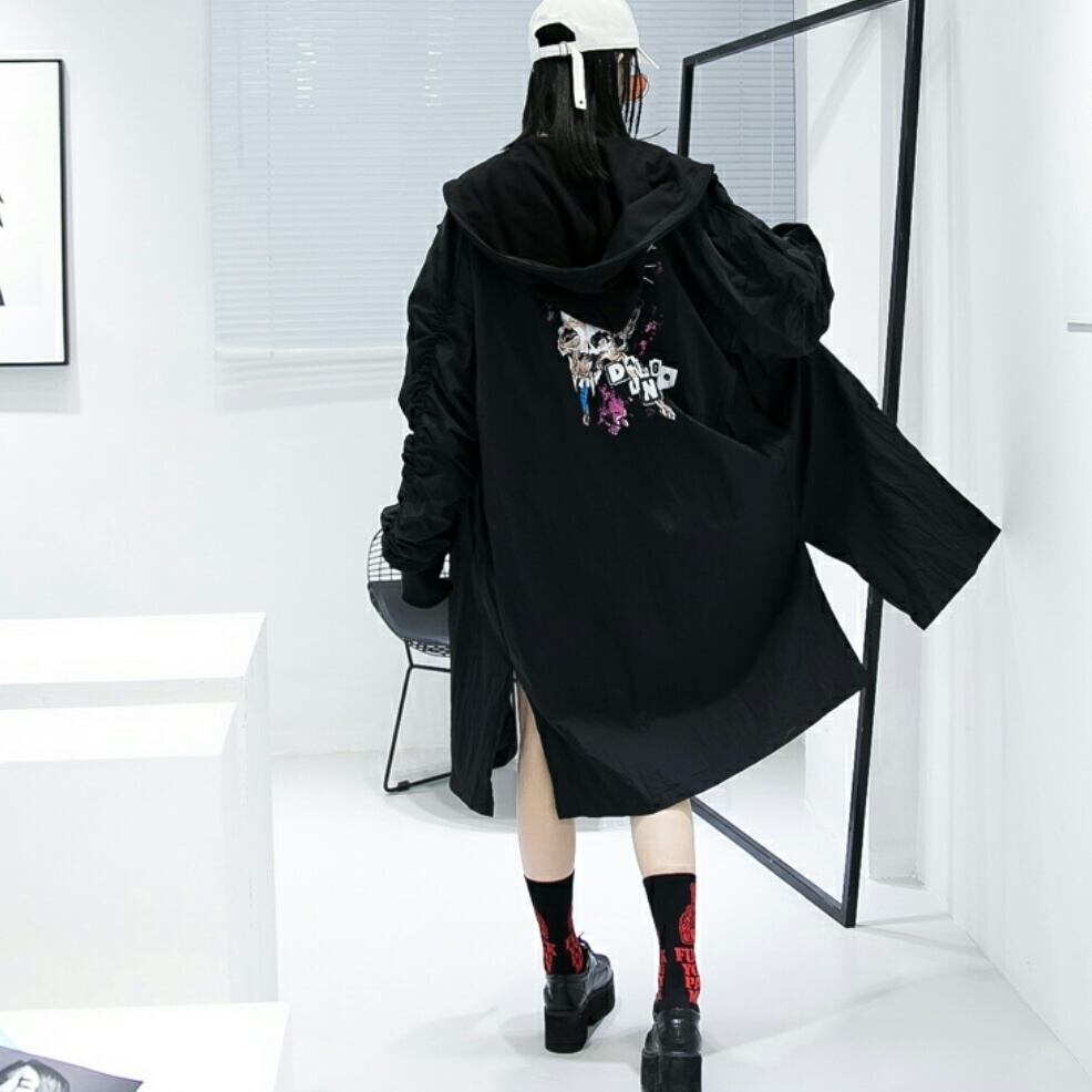 ユニセックスバック模様がお洒落オーバーサイズフード付アウター