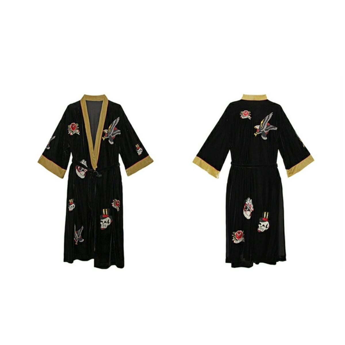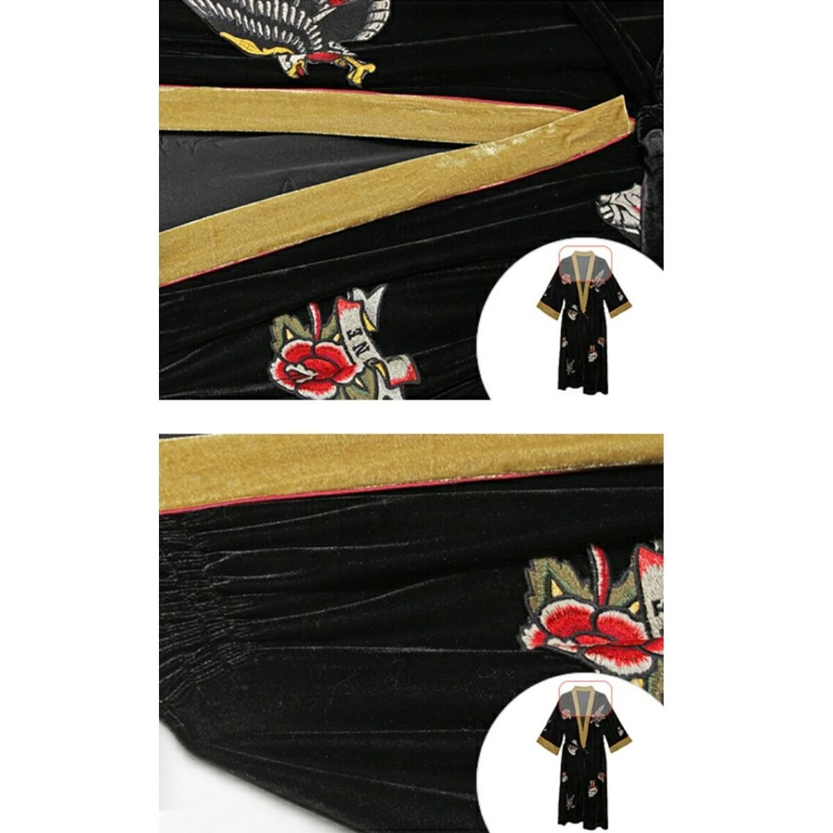 個性が際立つユニークな模様のロング丈ガウンアウター