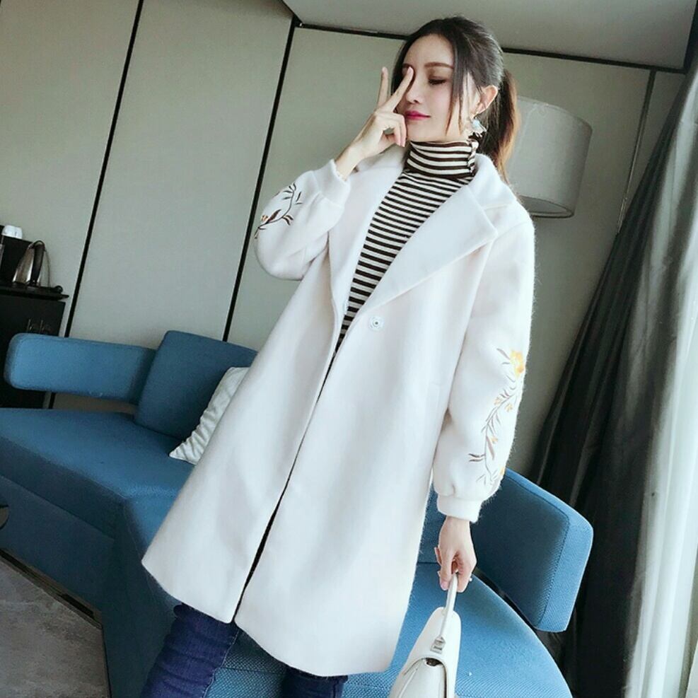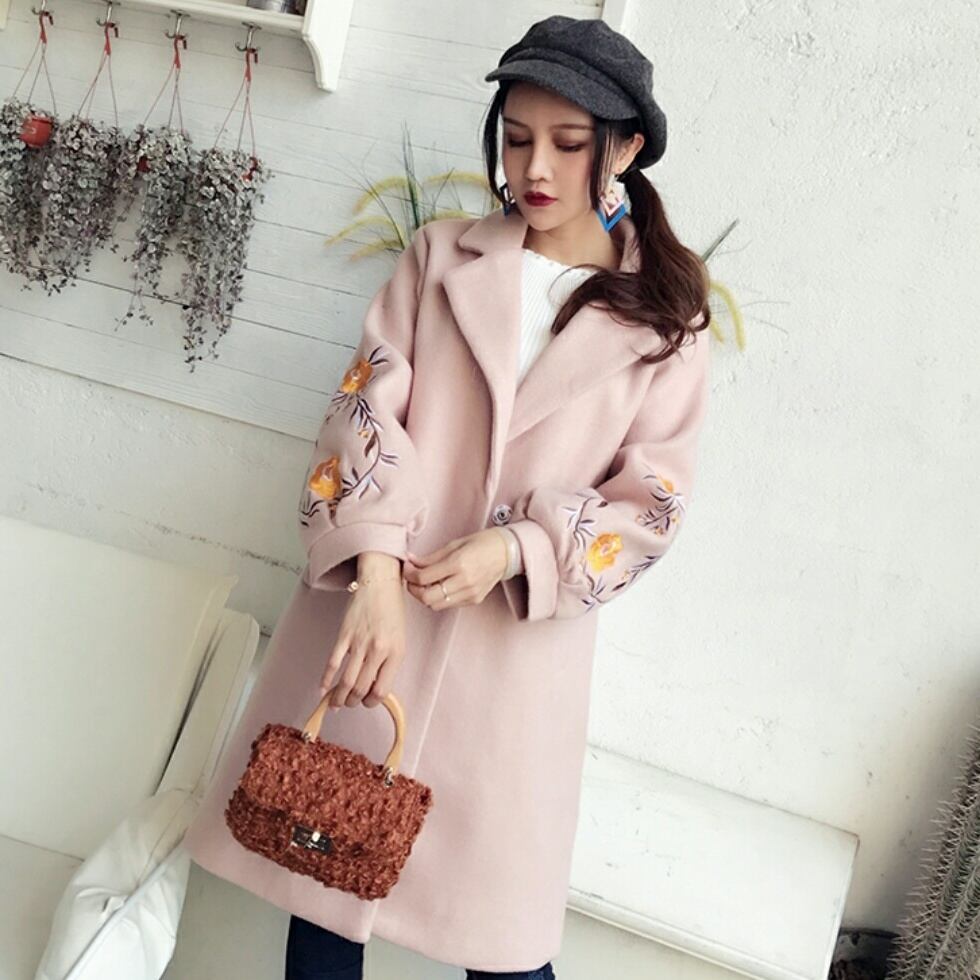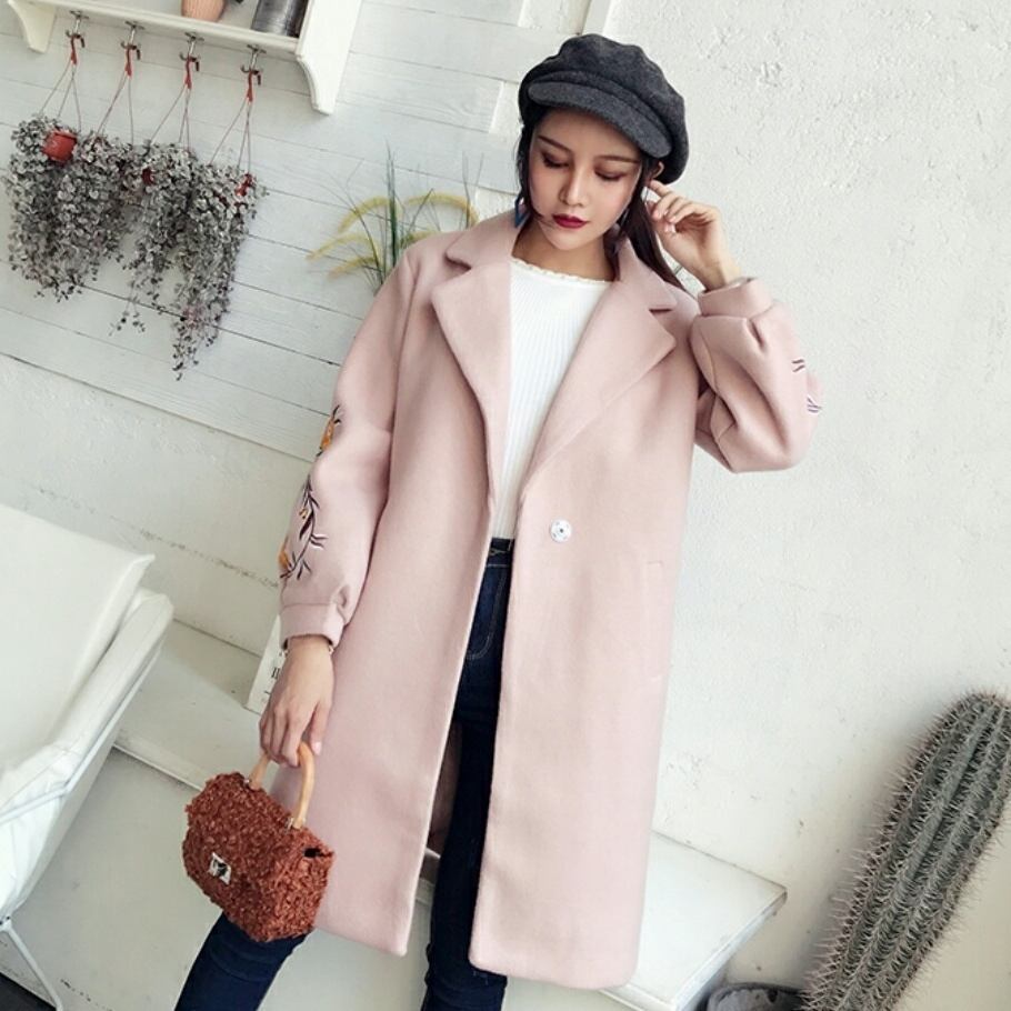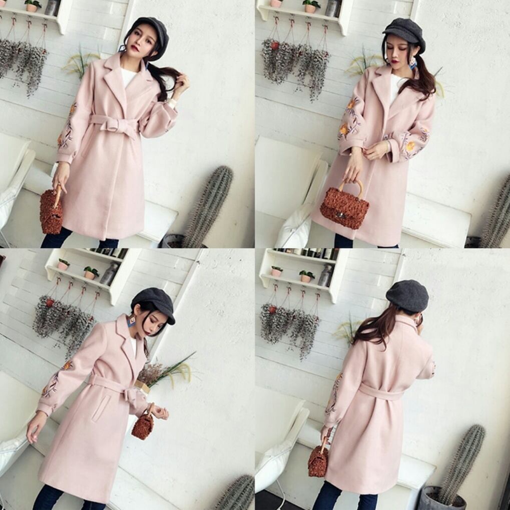 袖ボリューム花柄刺繍でフェミニンな雰囲気ノッチドカラーコート