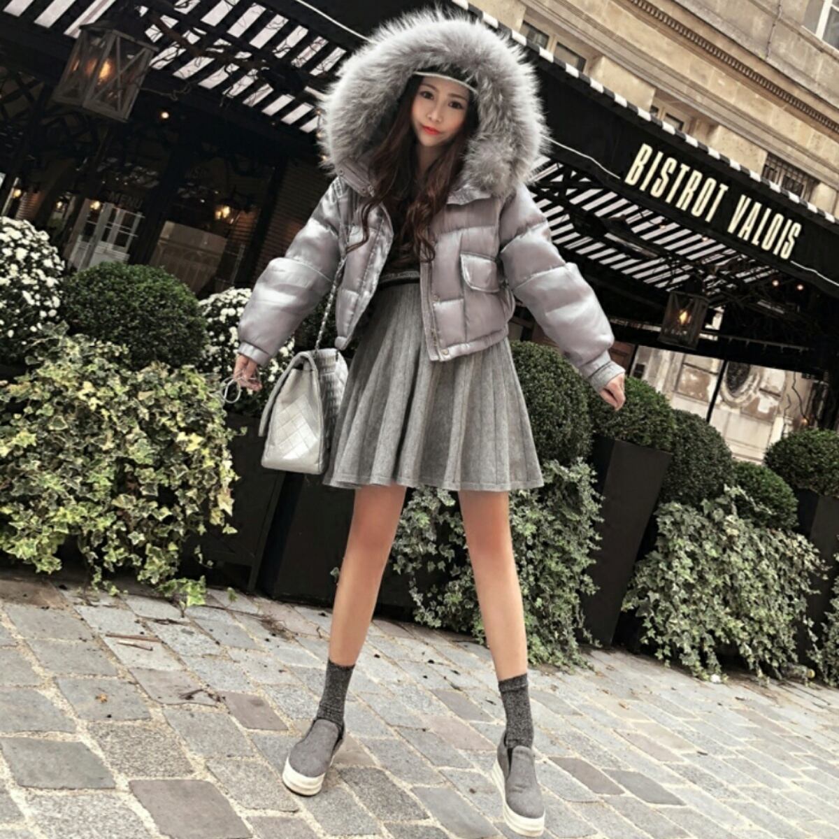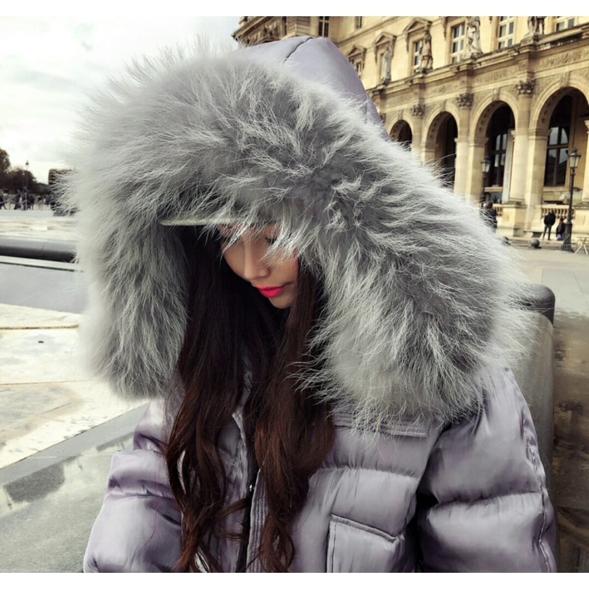 フォックスファー使用フード付カジュアル中綿ジャケット