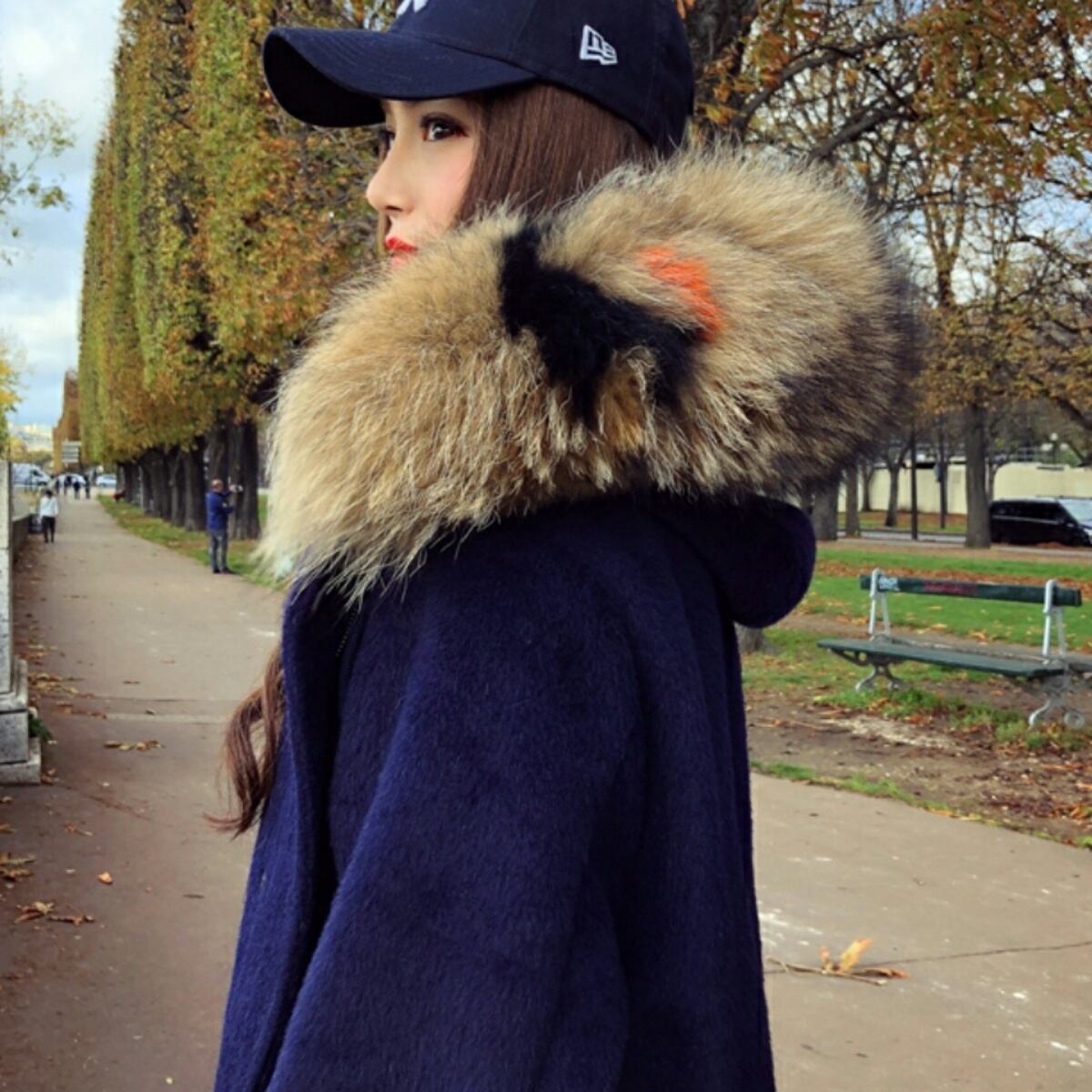 ラクーンファーのボーダーカラーおしゃれ心擽る異素材コート