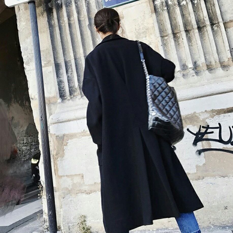 大きい肩幅&ポケットが魅力シンプルなロング丈チェスターコート